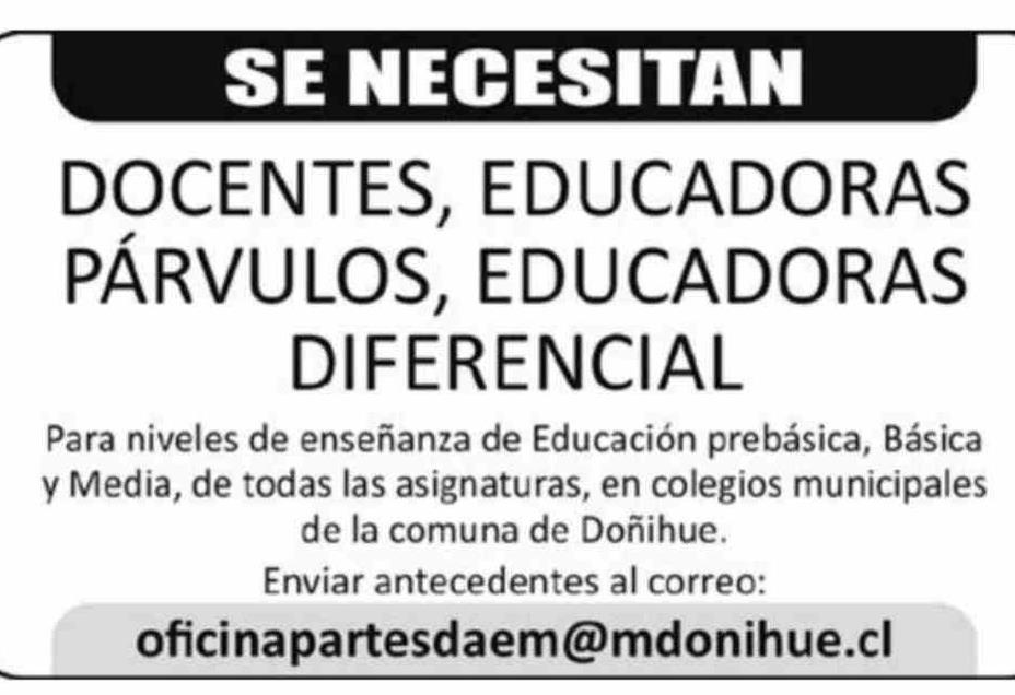 SE NECESITAN DOCENTES, EDUCADORAS PÁRVULOS, EDUCADORAS DIFERENCIAL