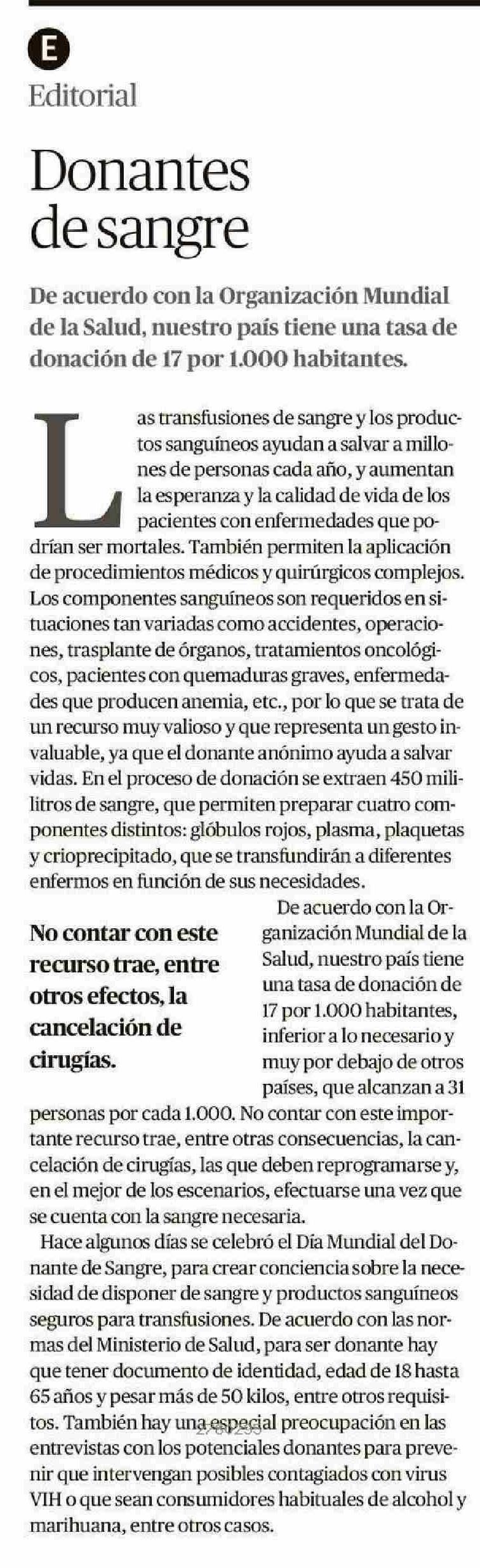 Editorial: Donantes de sangre