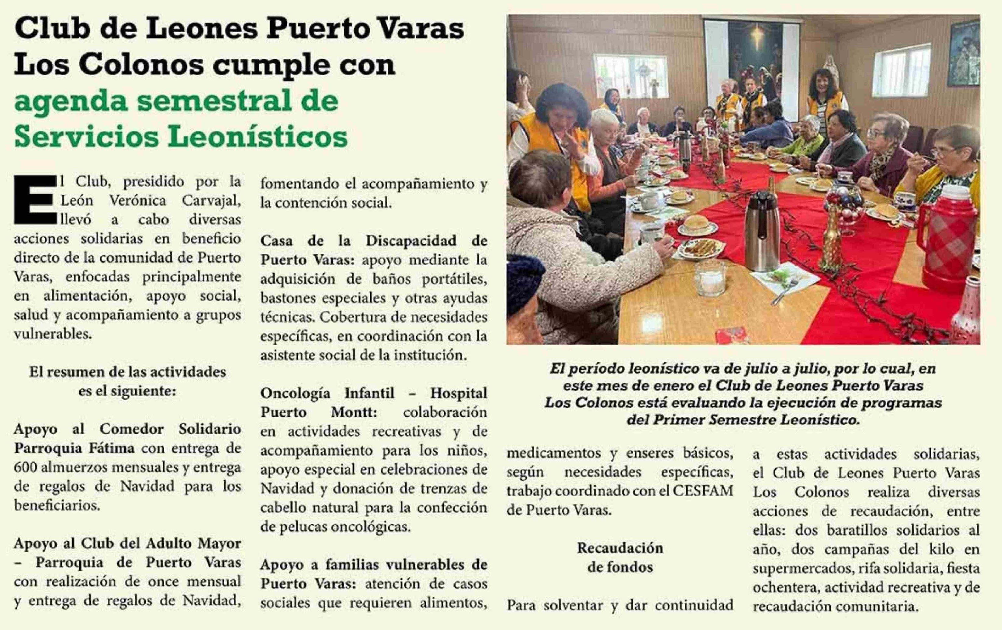 Club de Leones Puerto Varas Los Colonos cumple con agenda semestral de Servicios Leonísticos