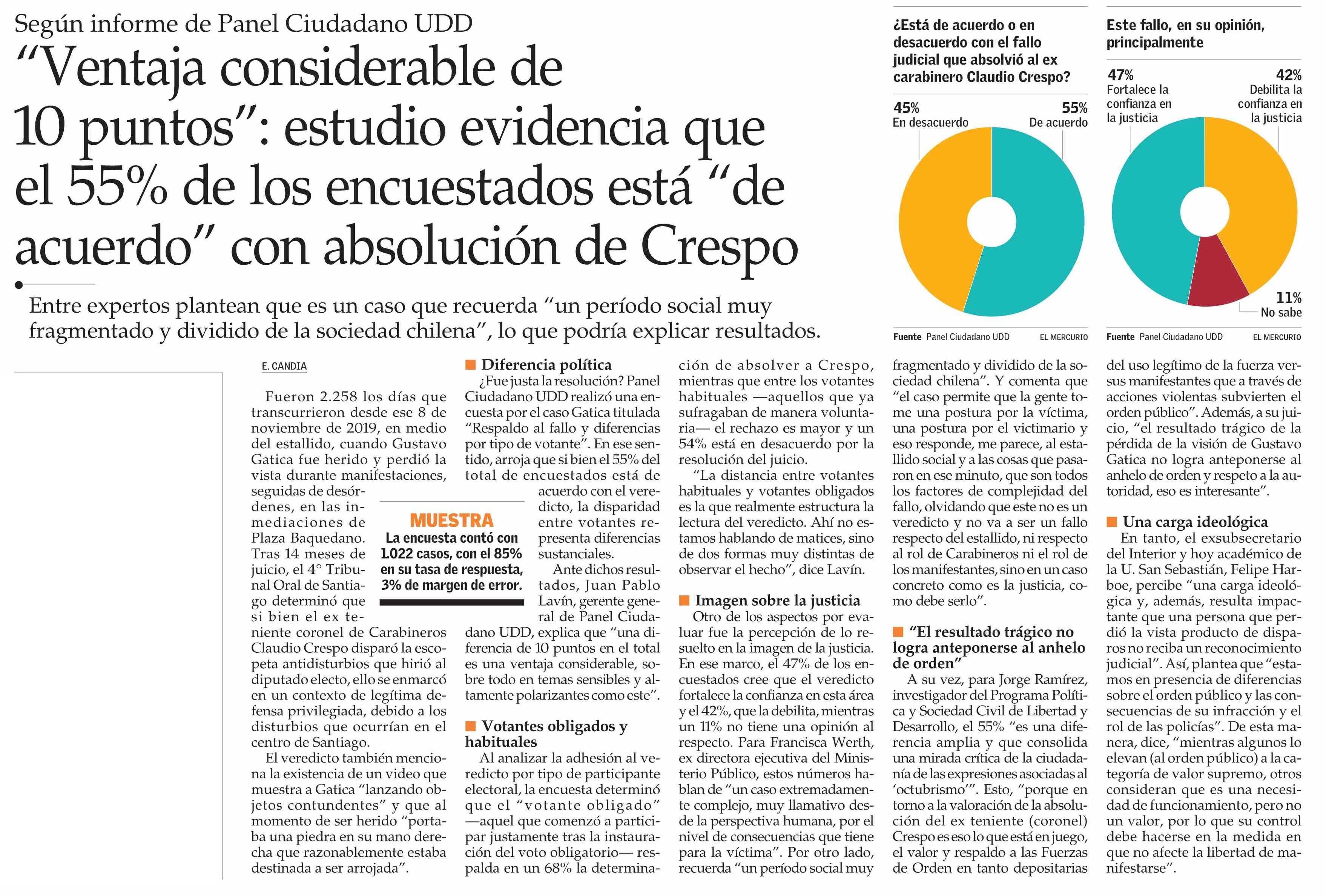 “Ventaja considerable de 10 puntos”: estudio evidencia que el 55% de los encuestados está “de acuerdo” con absolución de Crespo