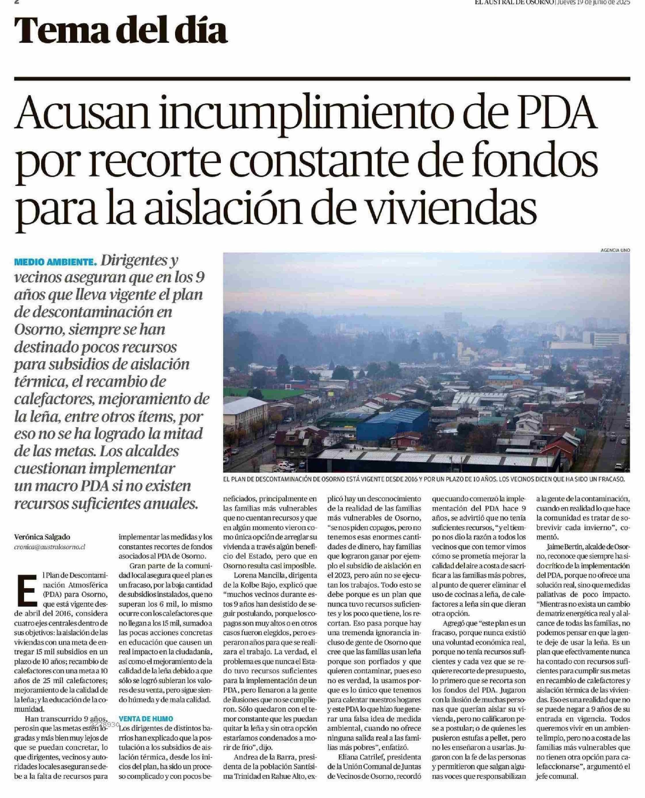 Acusan incumplimiento de PDA por recorte constante de fondos para la aislación de viviendas