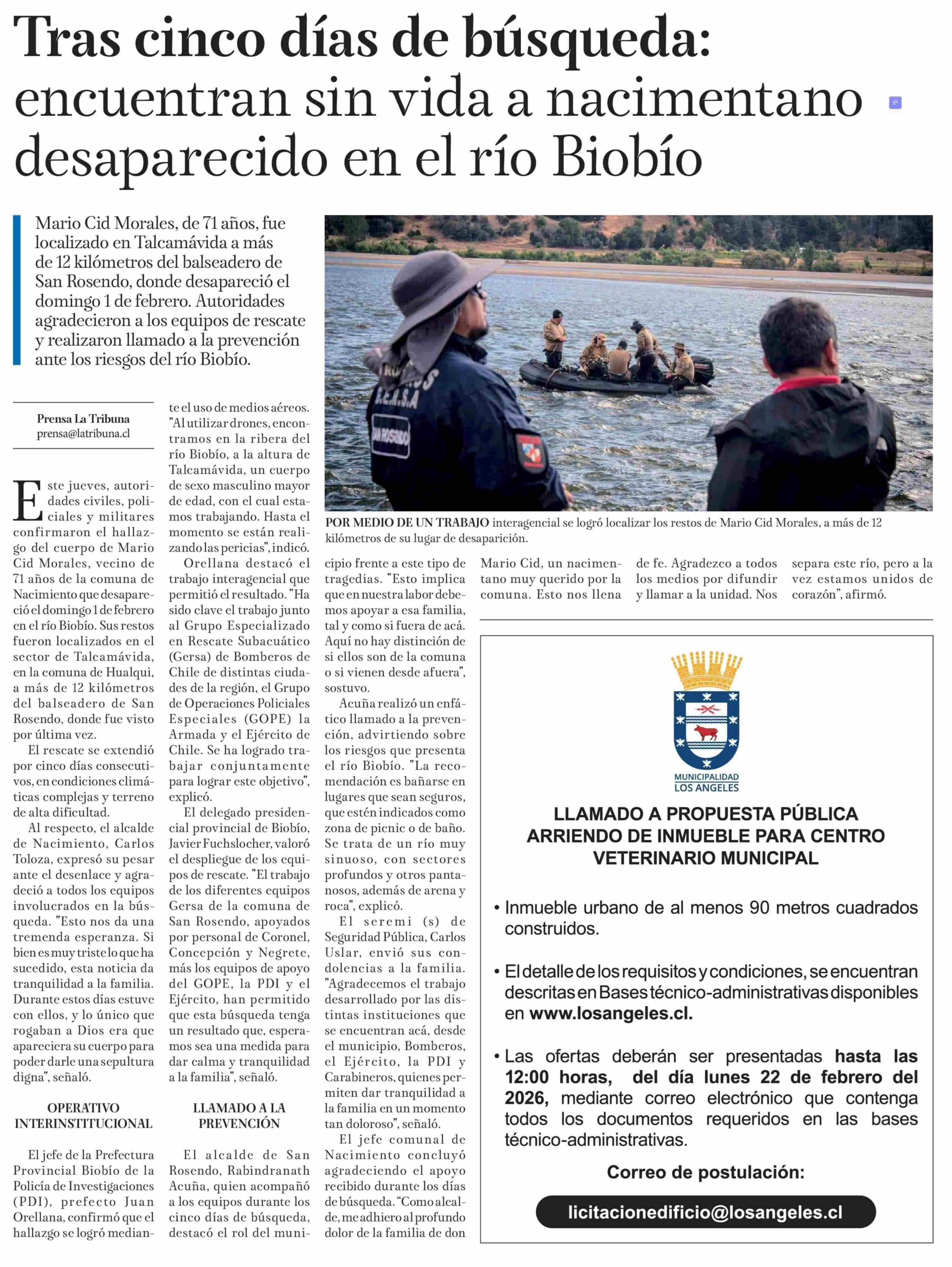 Tras cinco días de búsqueda: encuentran sin vida a nacimentano desaparecido en el río Biobío