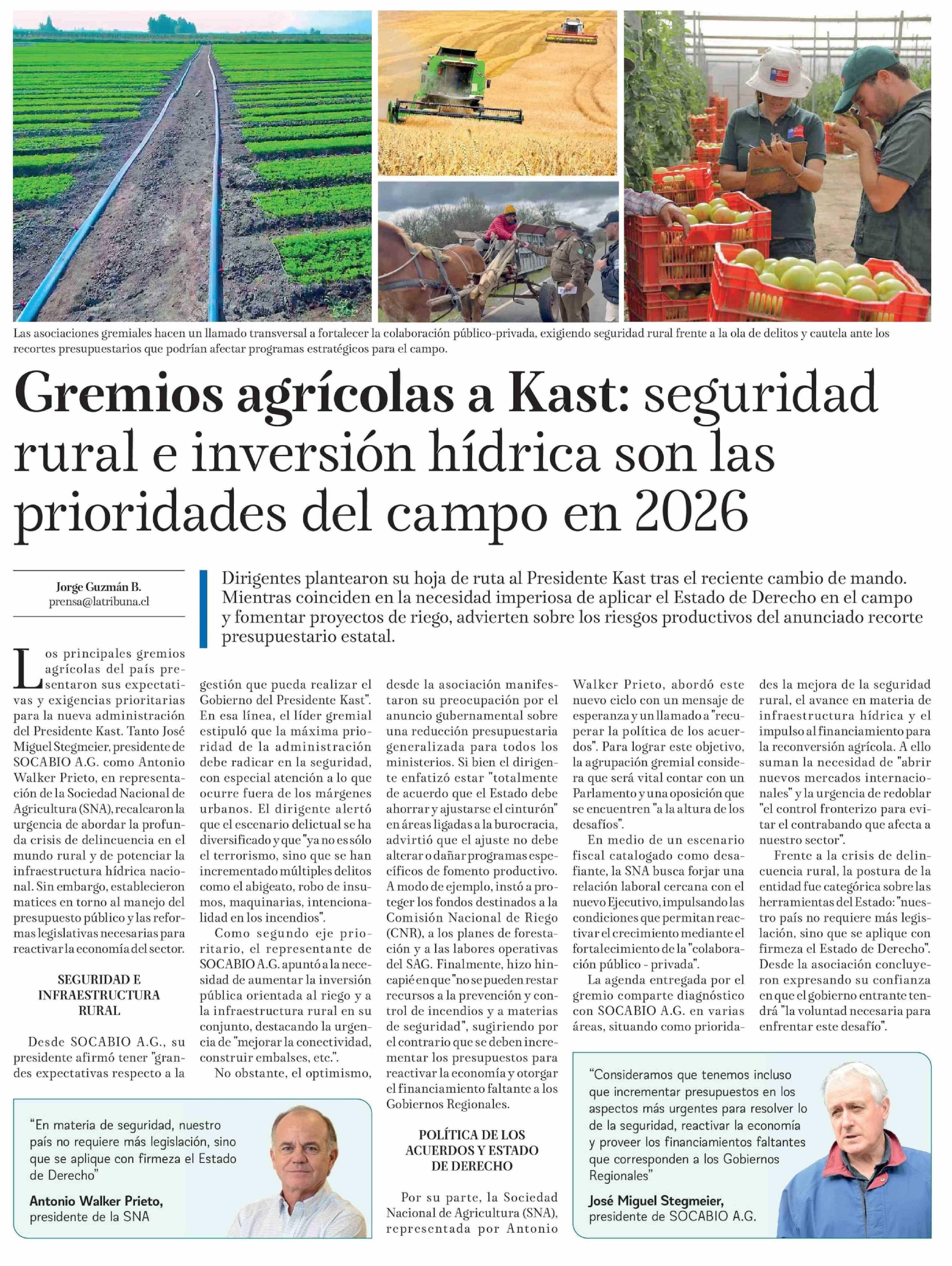 Título: Gremios agrícolas a Kast: seguridad rural e inversión hídrica son las prioridades del campo en 2026