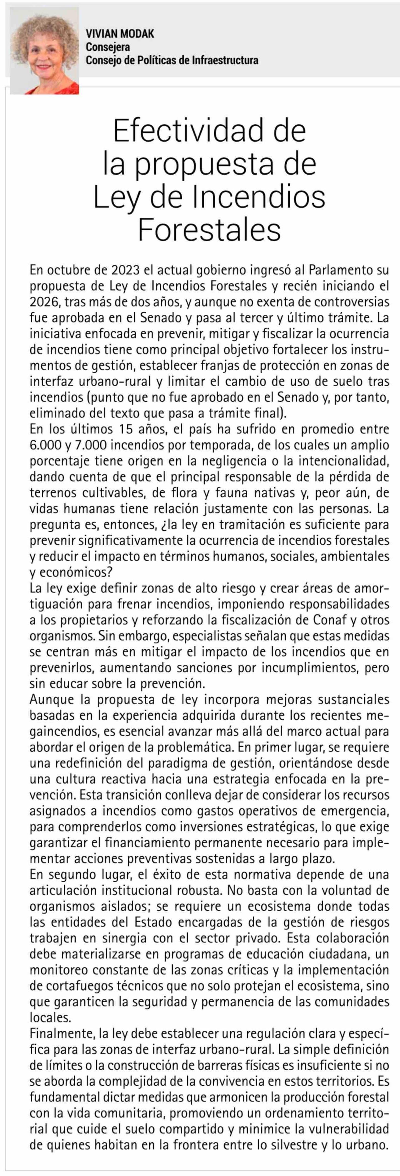 Columnas de Opinión: Efectividad de la propuesta de Ley de Incendios Forestales
