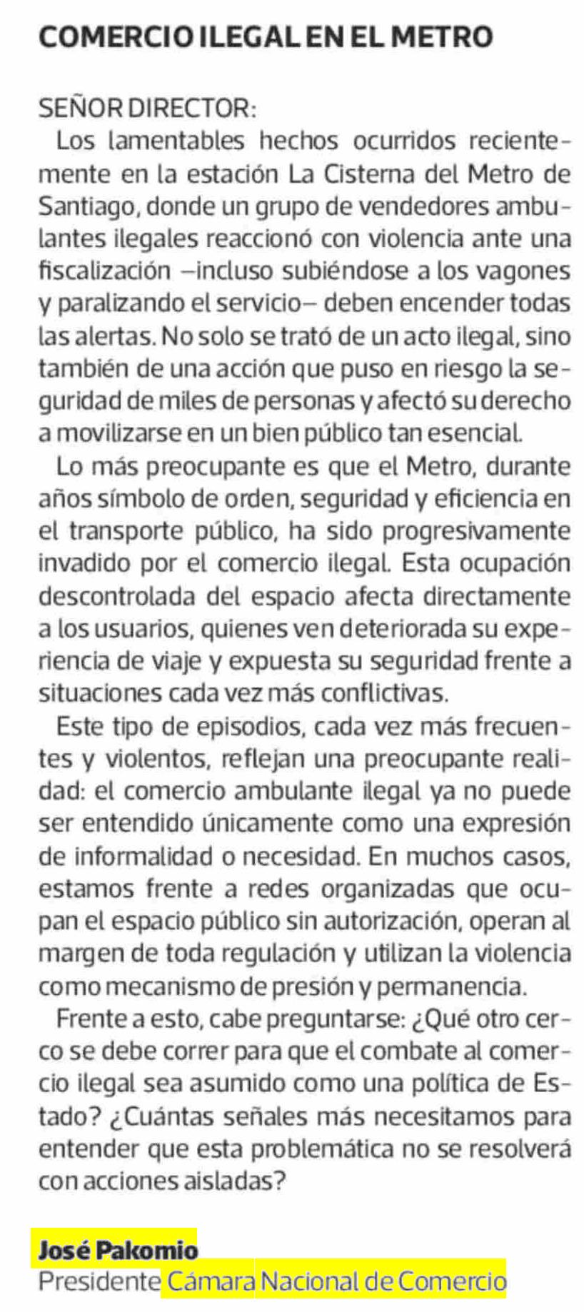 CARTAS: COMERCIO ILEGAL EN EL METRO