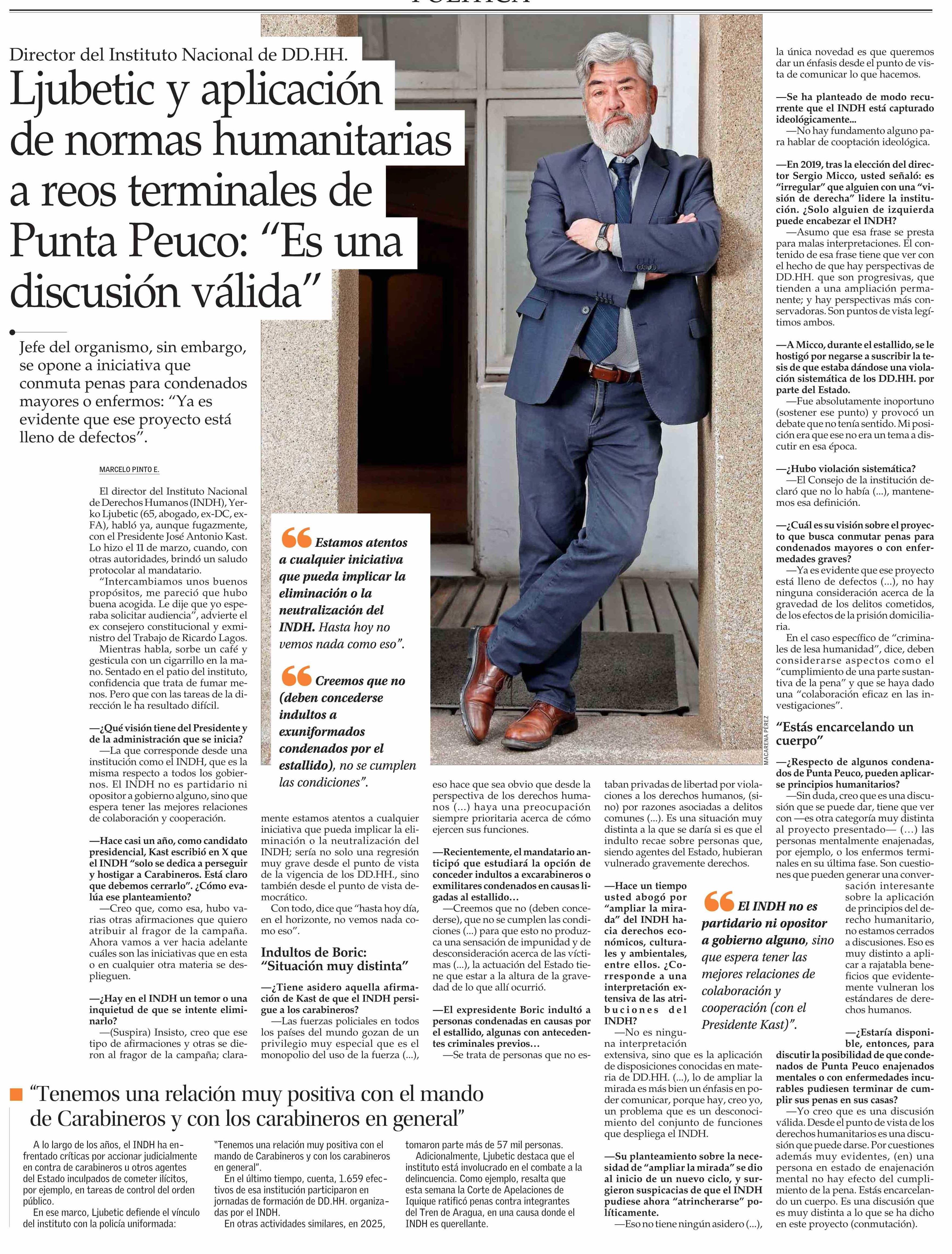 Ljubetic y aplicación de normas humanitarias a reos terminales de Punta Peuco: “Es una discusión válida”