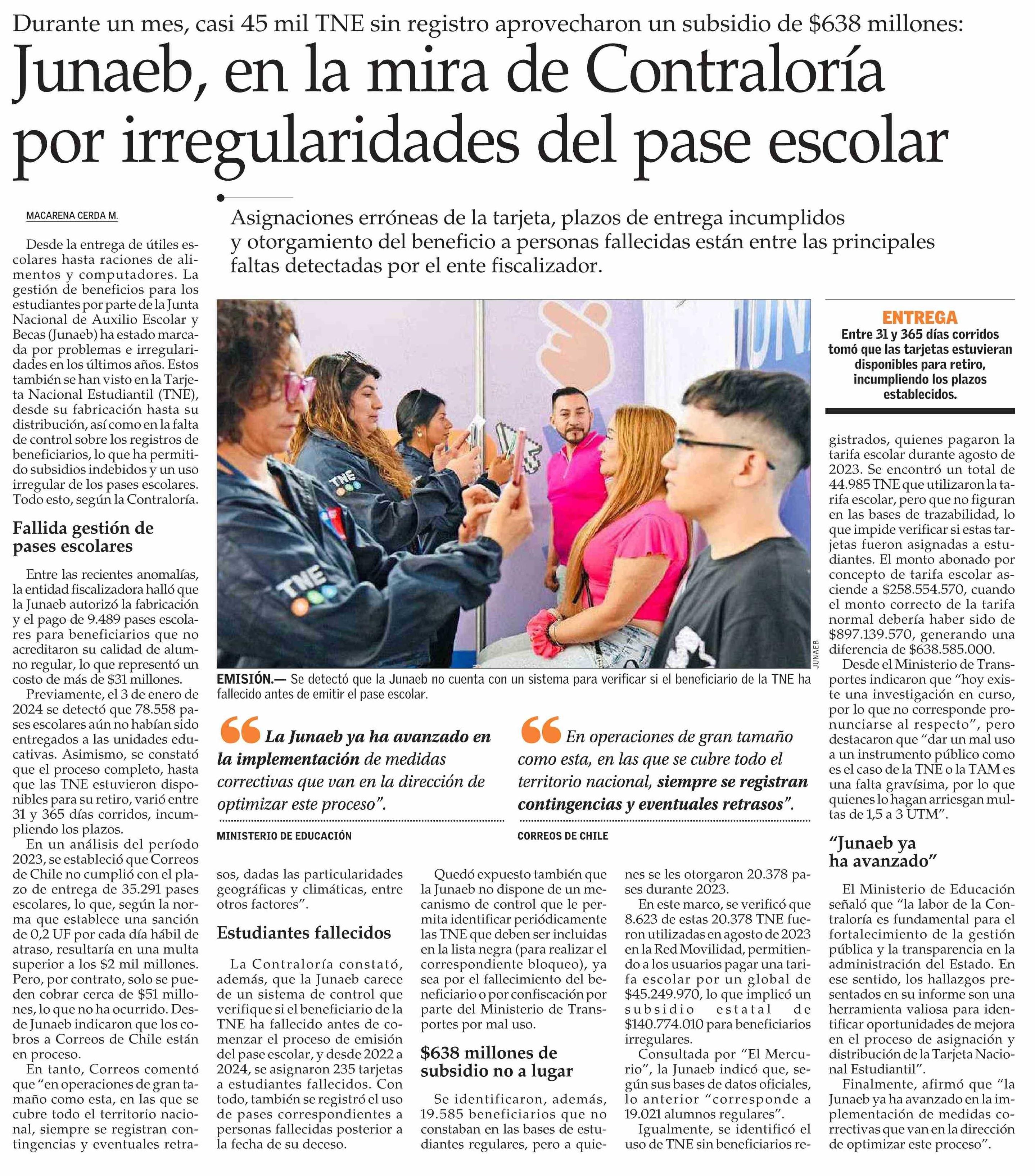 Junaeb, en la mira de Contraloría por irregularidades del pase escolar