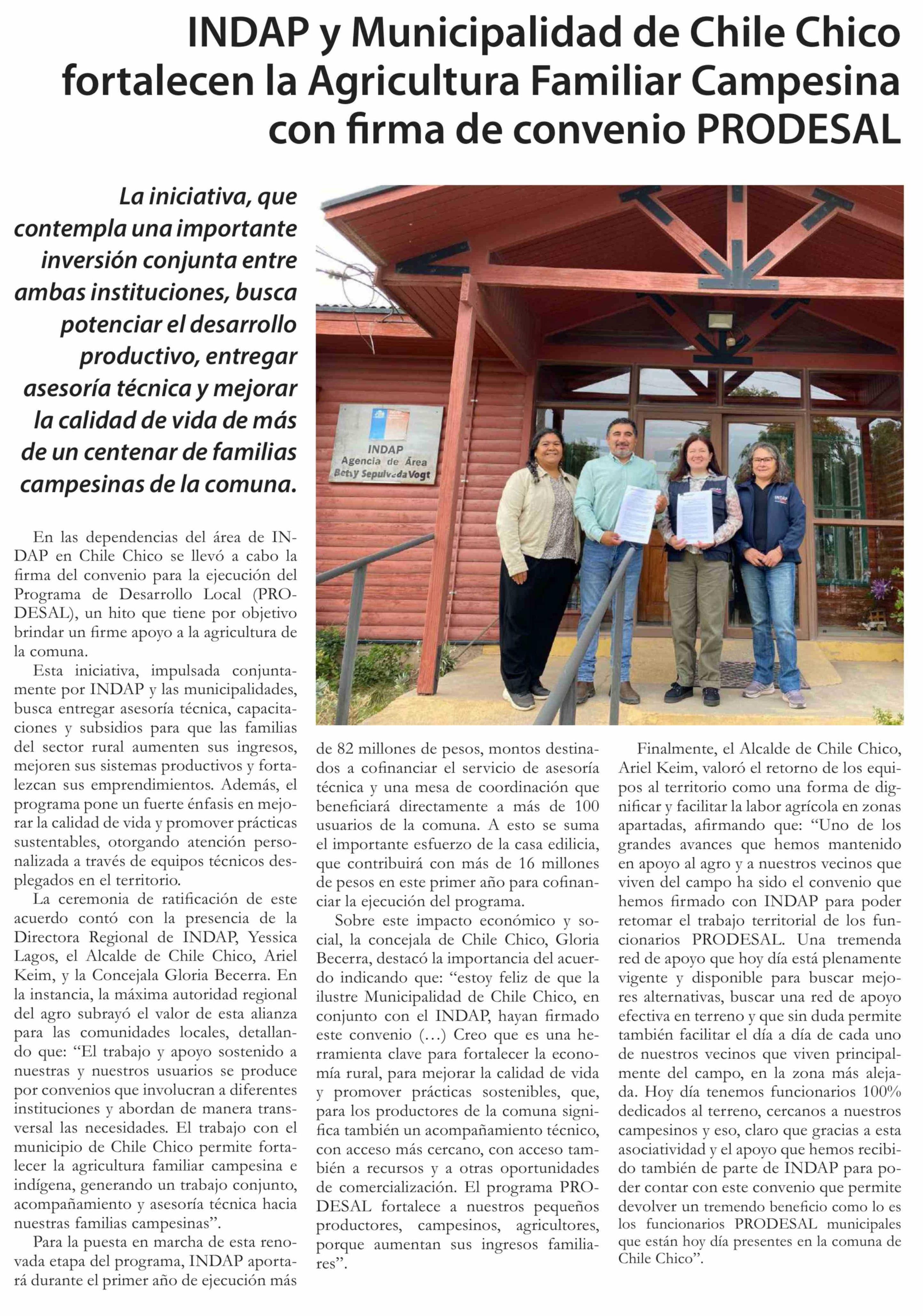 Título: INDAP y Municipalidad de Chile Chico fortalecen la Agricultura Familiar Campesina con firma de convenio PRODESAL