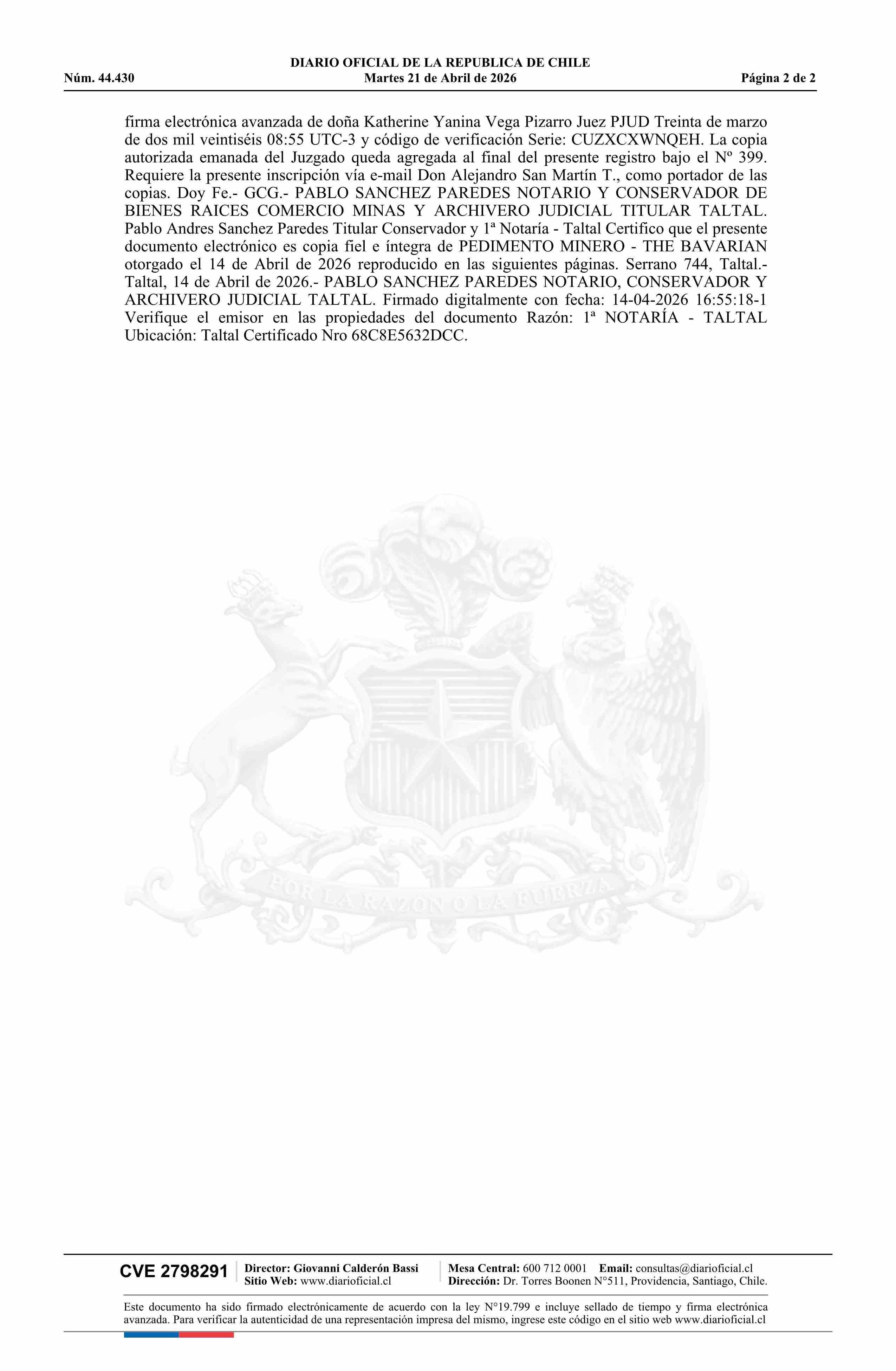 DIARIO OFICIAL CHILE - BOLETÍN OFICIAL DE MINERÍA (DIARIO OFICIAL CHILE – BOM – PEDIMENTOS MINEROS)