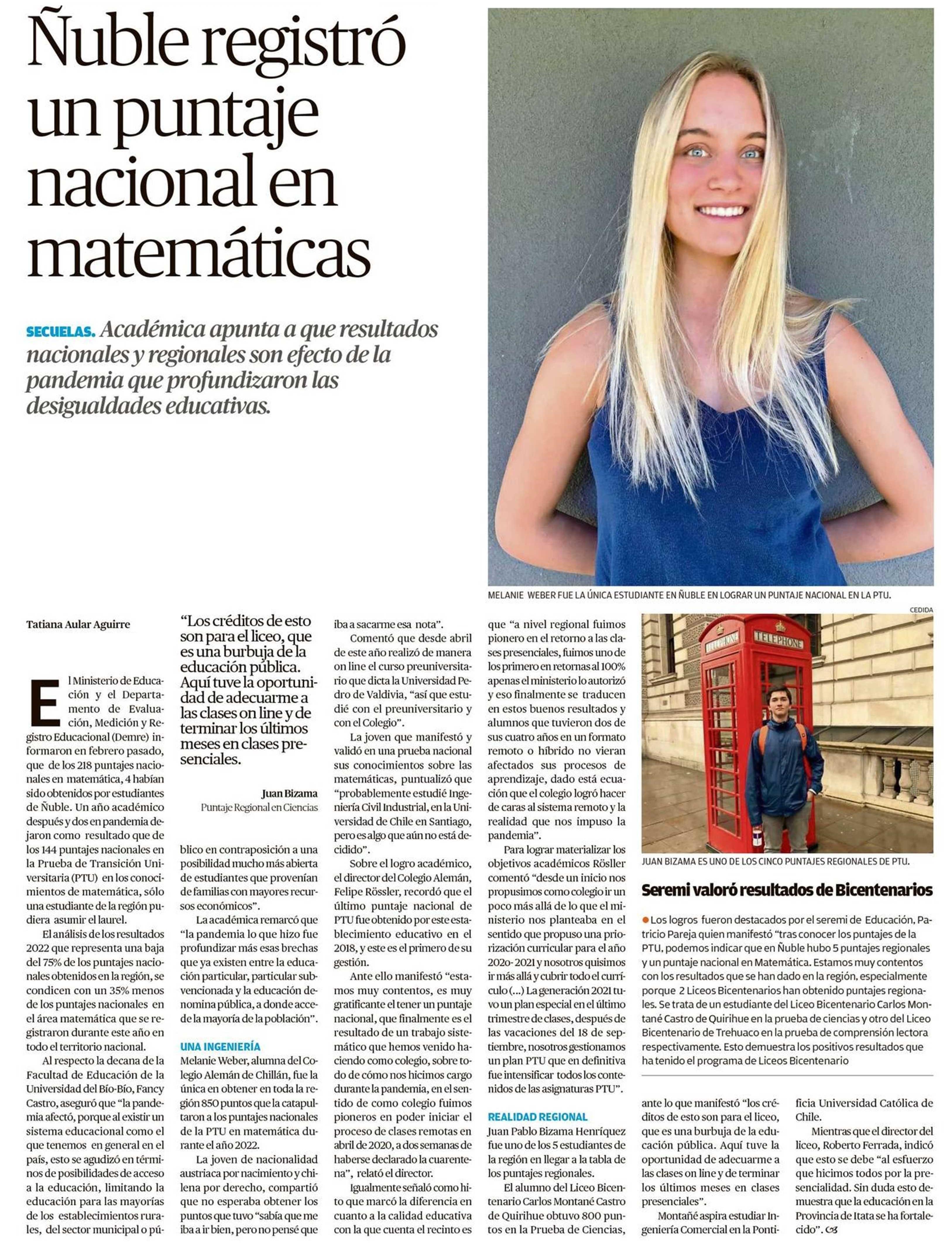 Ñuble registró un puntaje nacional en matemáticas