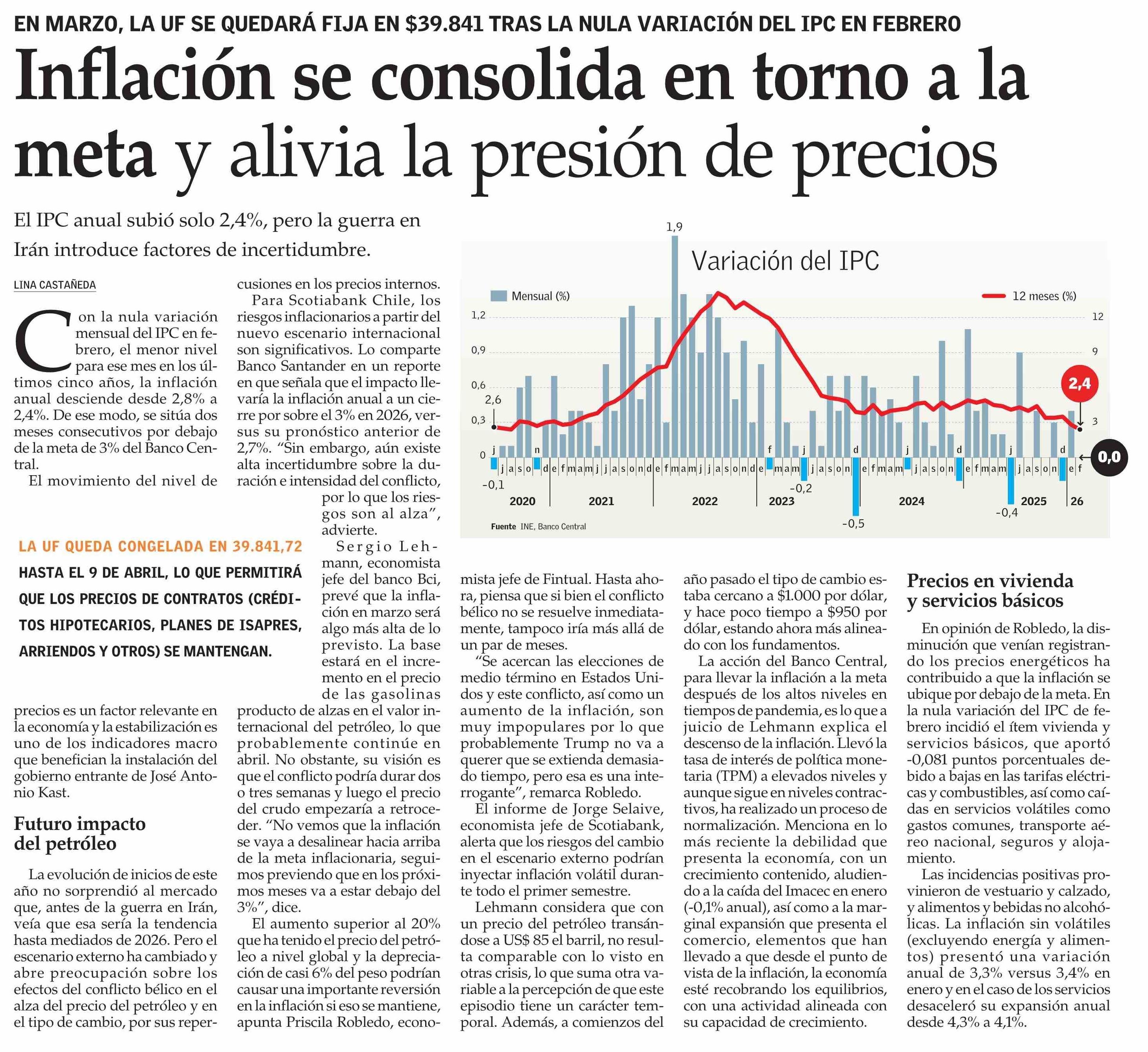 Inflación se consolida en torno a la meta y alivia la presión de precios