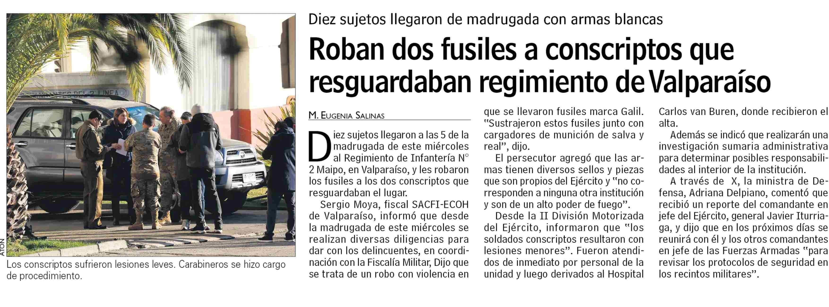 Roban dos fusiles a conscriptos que resguardaban regimiento de Valparaíso