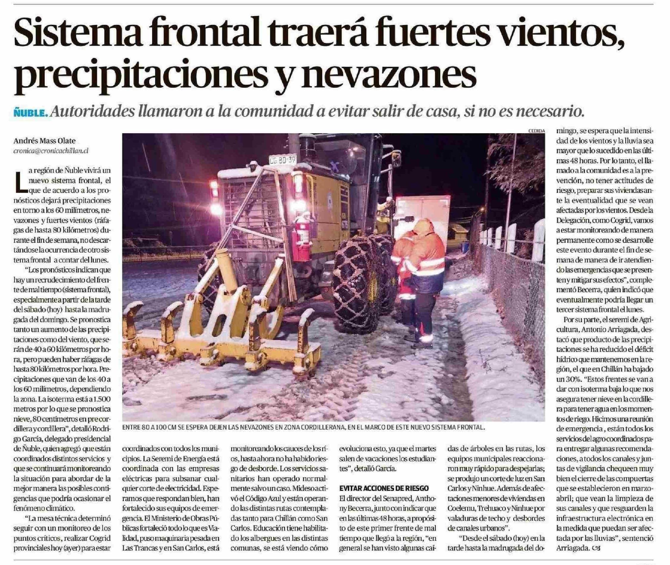 Sistema frontal traerá fuertes vientos, precipitaciones y nevazones