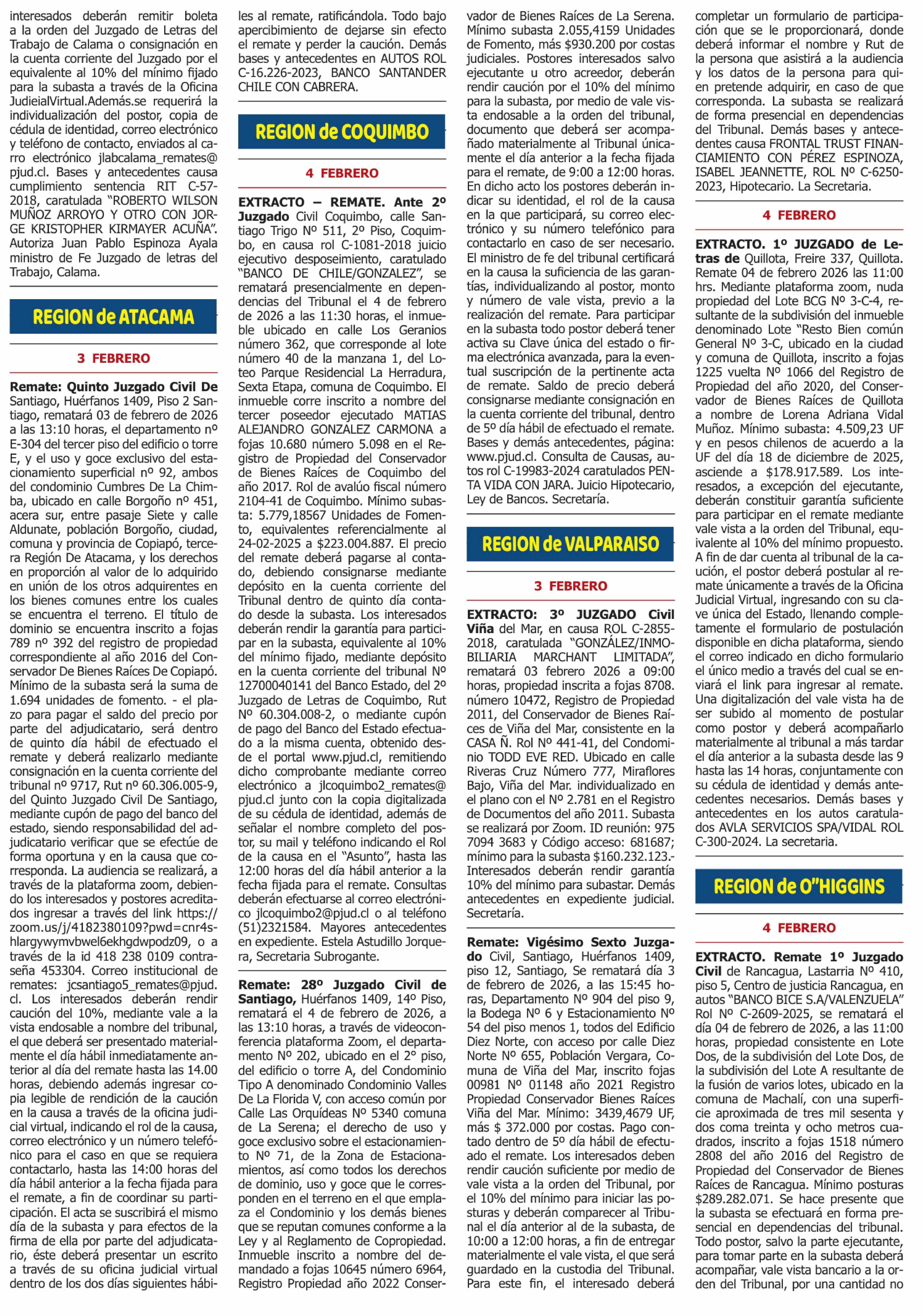 Remates: REMATES de PROPIEDADES (ORDENADOS por REGIONES)
