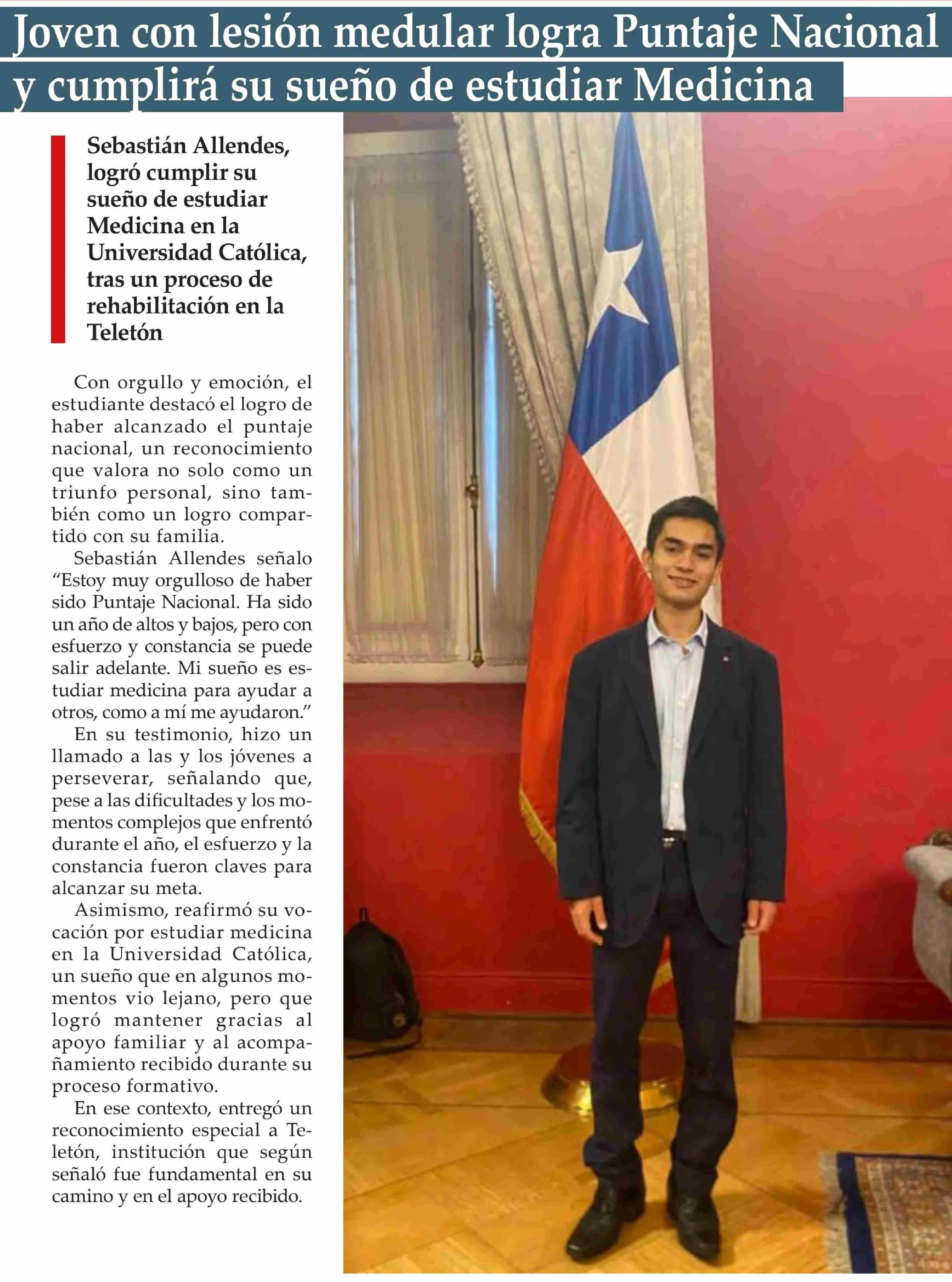 Joven con lesión medular logra Puntaje Nacional y cumplirá su sueño de estudiar Medicina