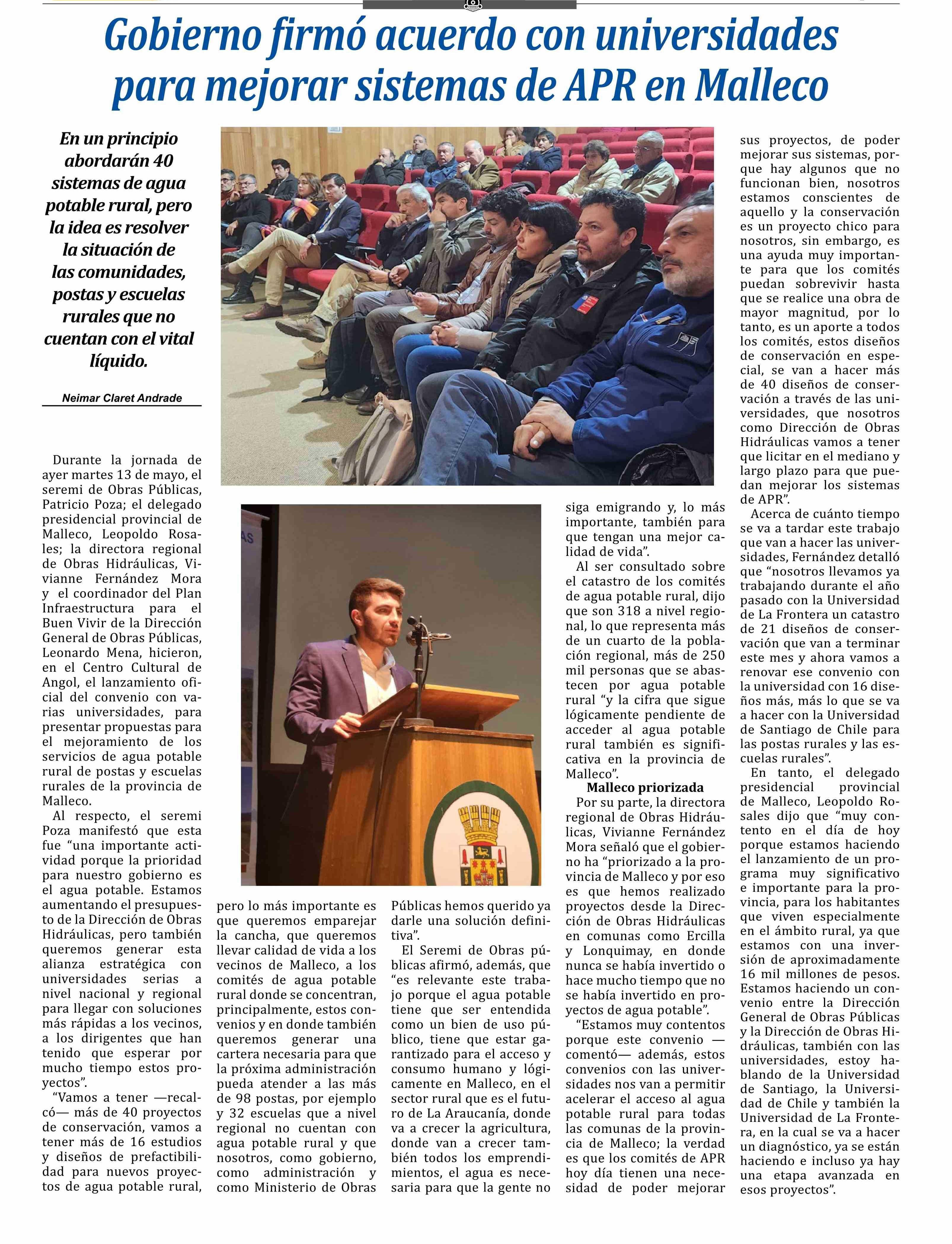 Gobierno firmó acuerdo con universidades para mejorar sistemas de APR en Malleco
