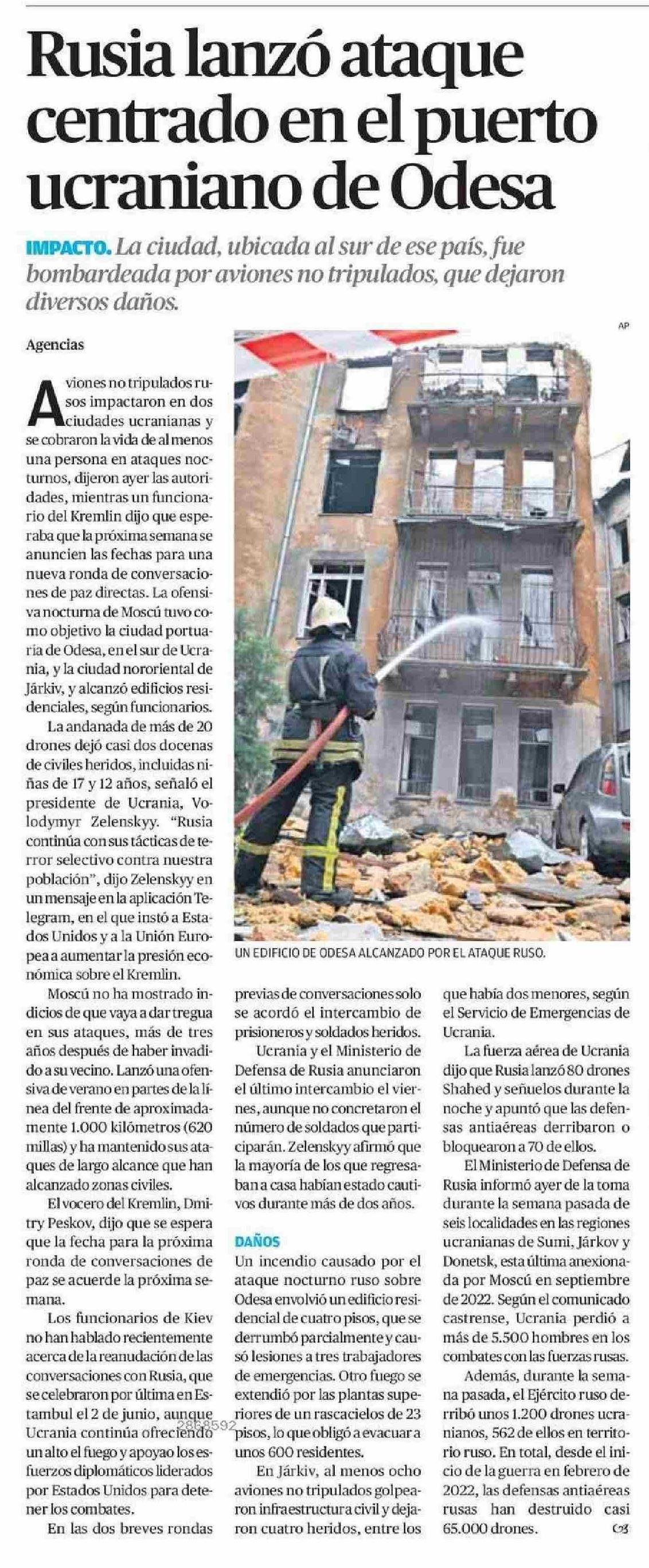 Rusia lanzó ataque centrado en el puerto ucraniano de Odesa
