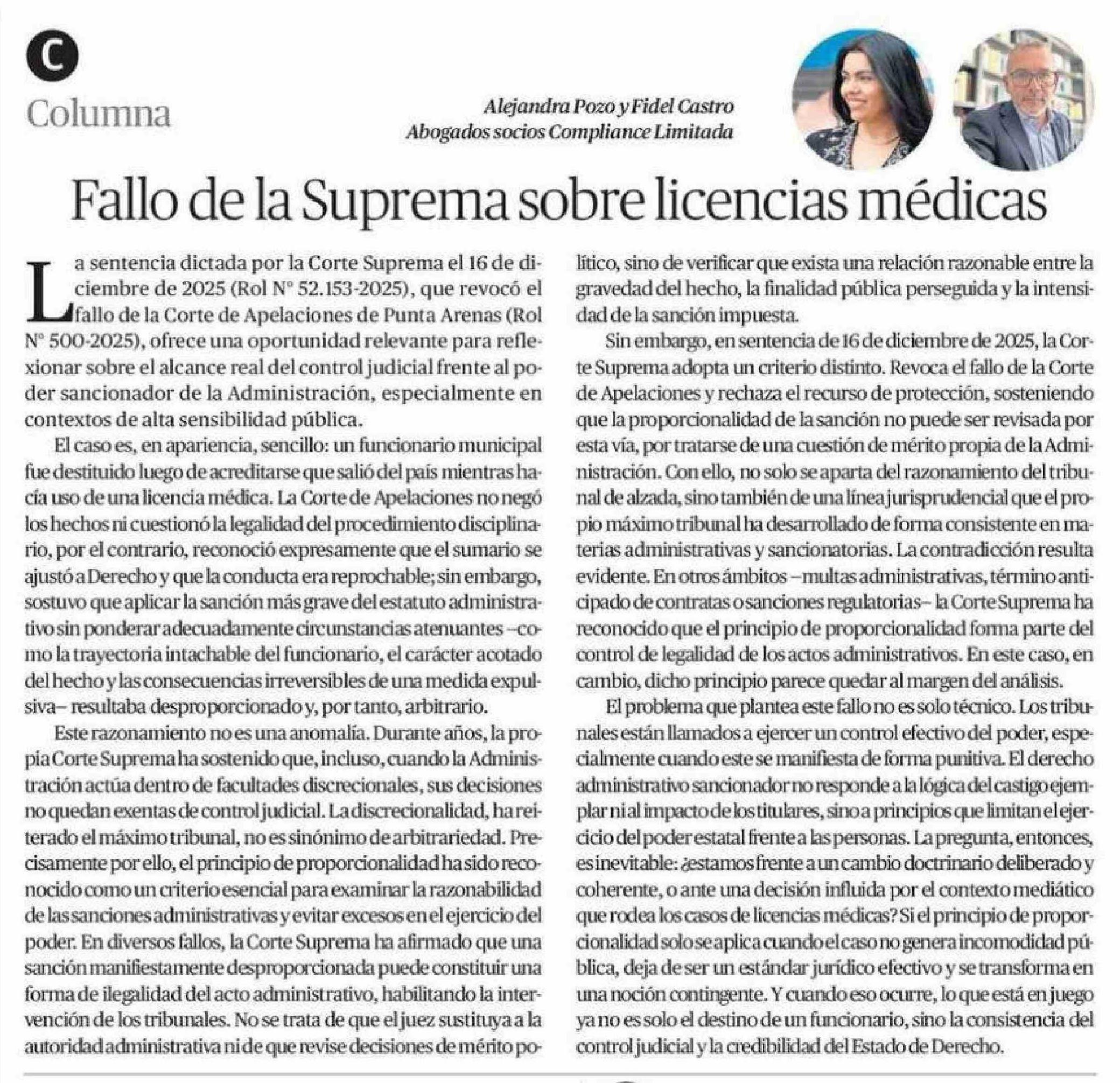 Columnas de Opinión: Fallo de la Suprema sobre licencias médicas