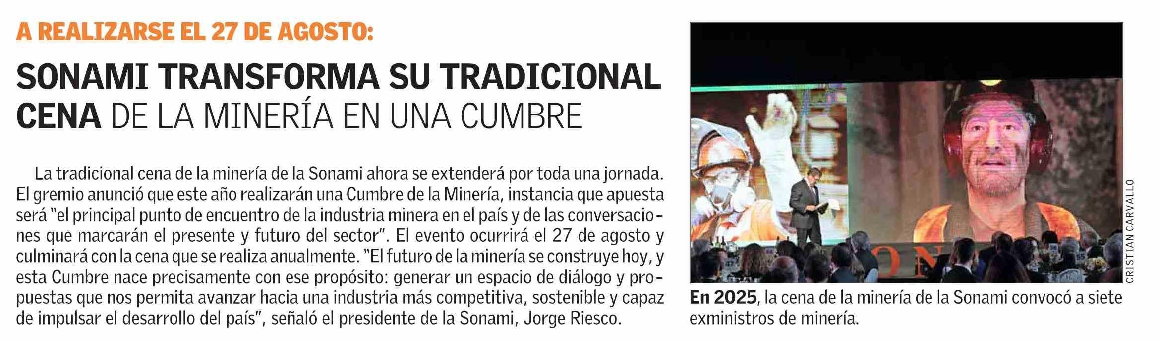 SONAMI TRANSFORMA SU TRADICIONAL CENA DE LA MINERÍA EN UNA CUMBRE