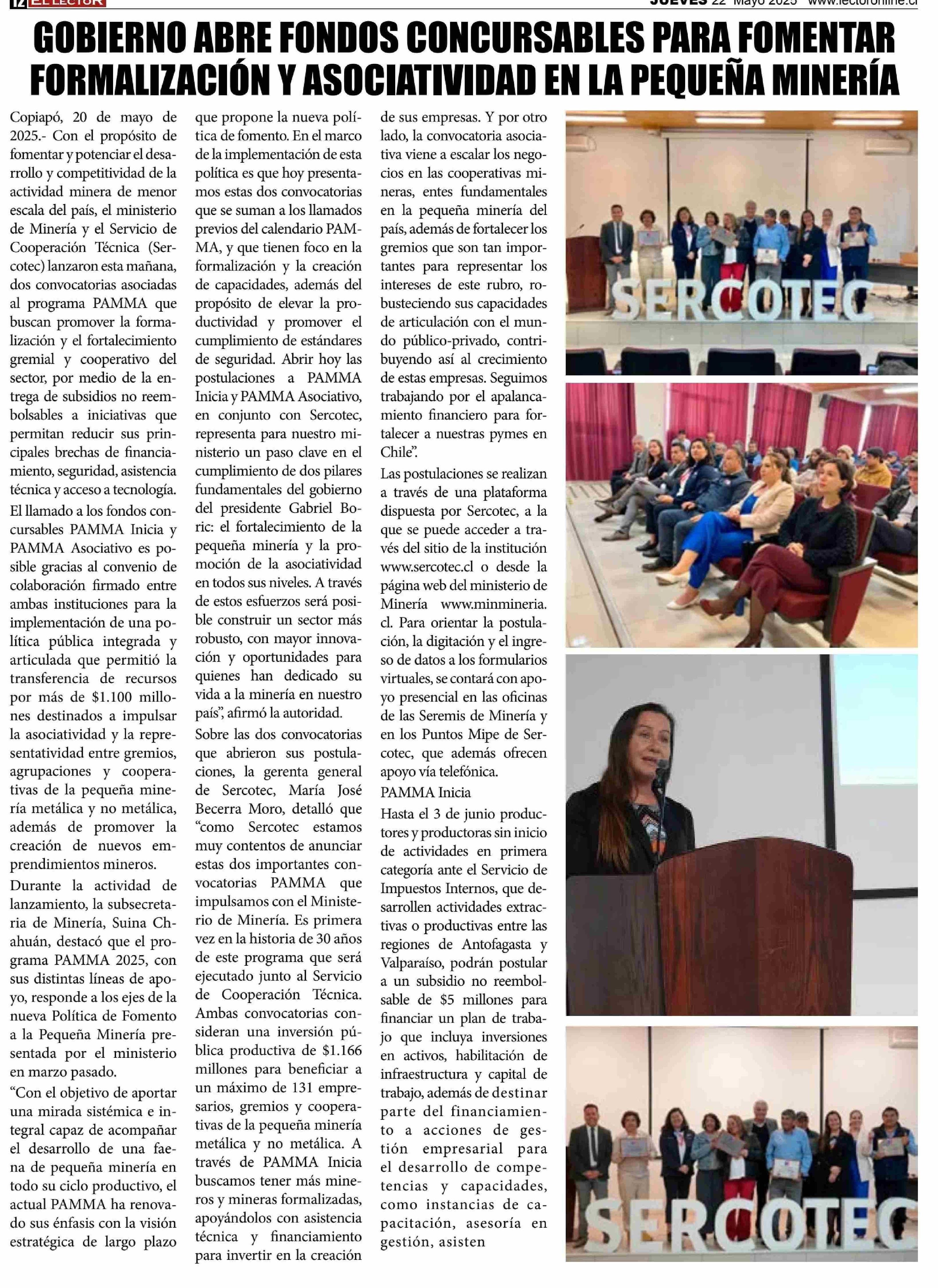GOBIERNO ABRE FONDOS CONCURSABLES PARA FOMENTAR FORMALIZACIÓN Y ASOCIATIVIDAD EN LA PEQUEÑA MINERÍA