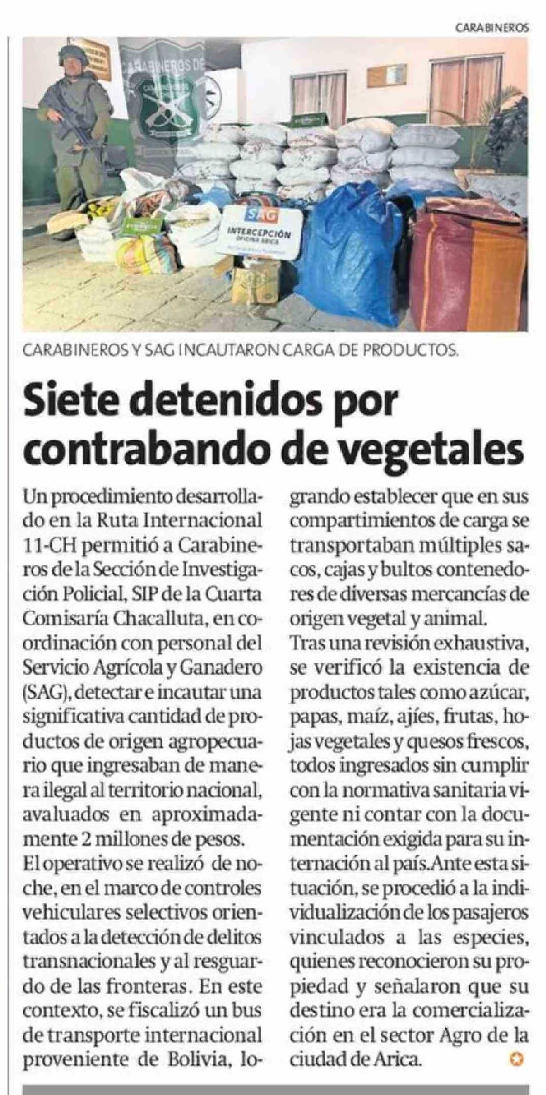 Siete detenidos por contrabando de vegetales