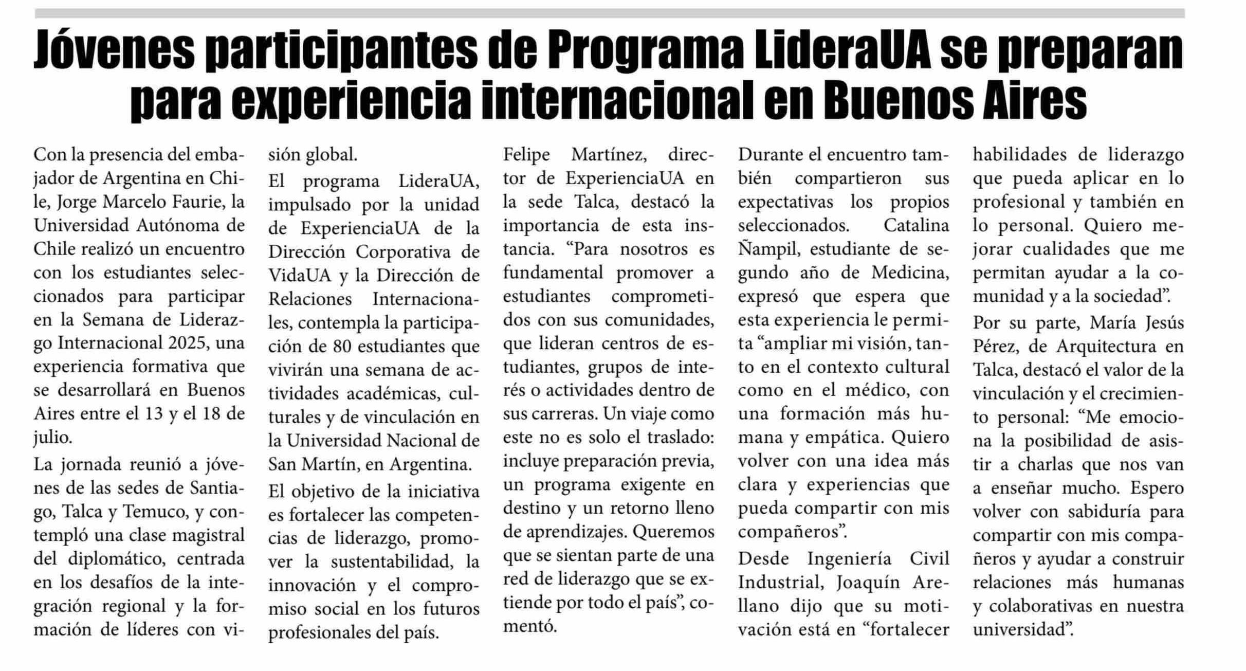 Jóvenes participantes de Programa LideraUA se preparan para experiencia internacional en Buenos Aires