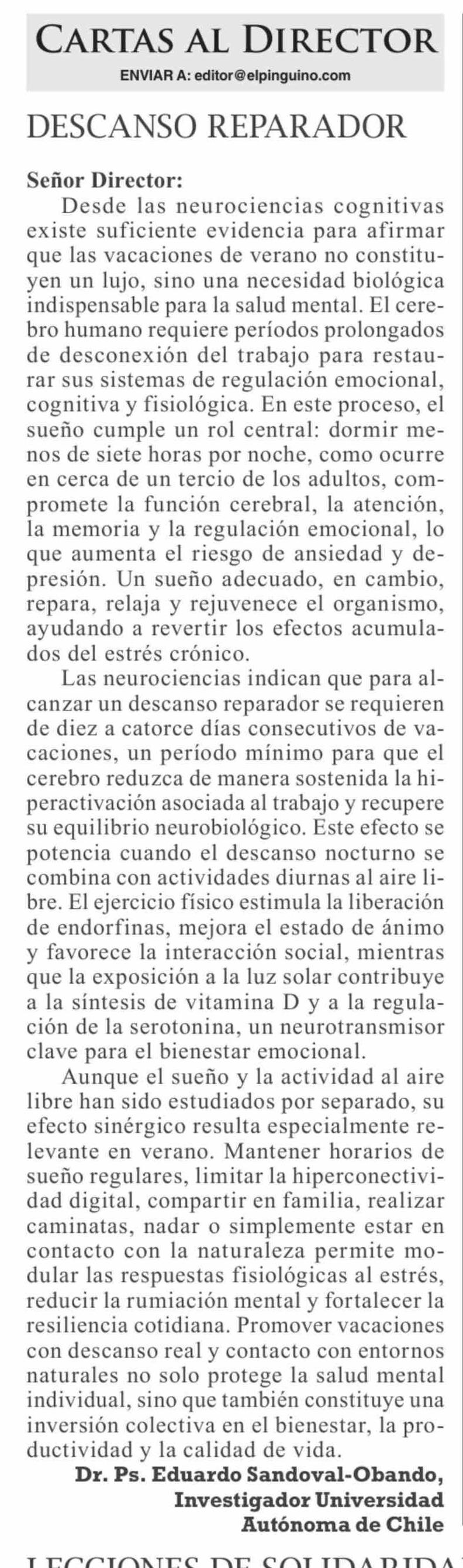 Cartas: DESCANSO REPARADOR