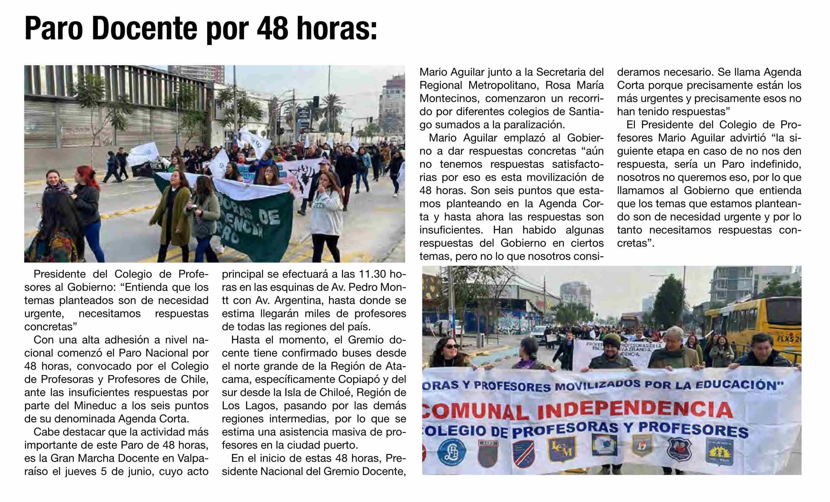 Paro Docente por 48 horas: