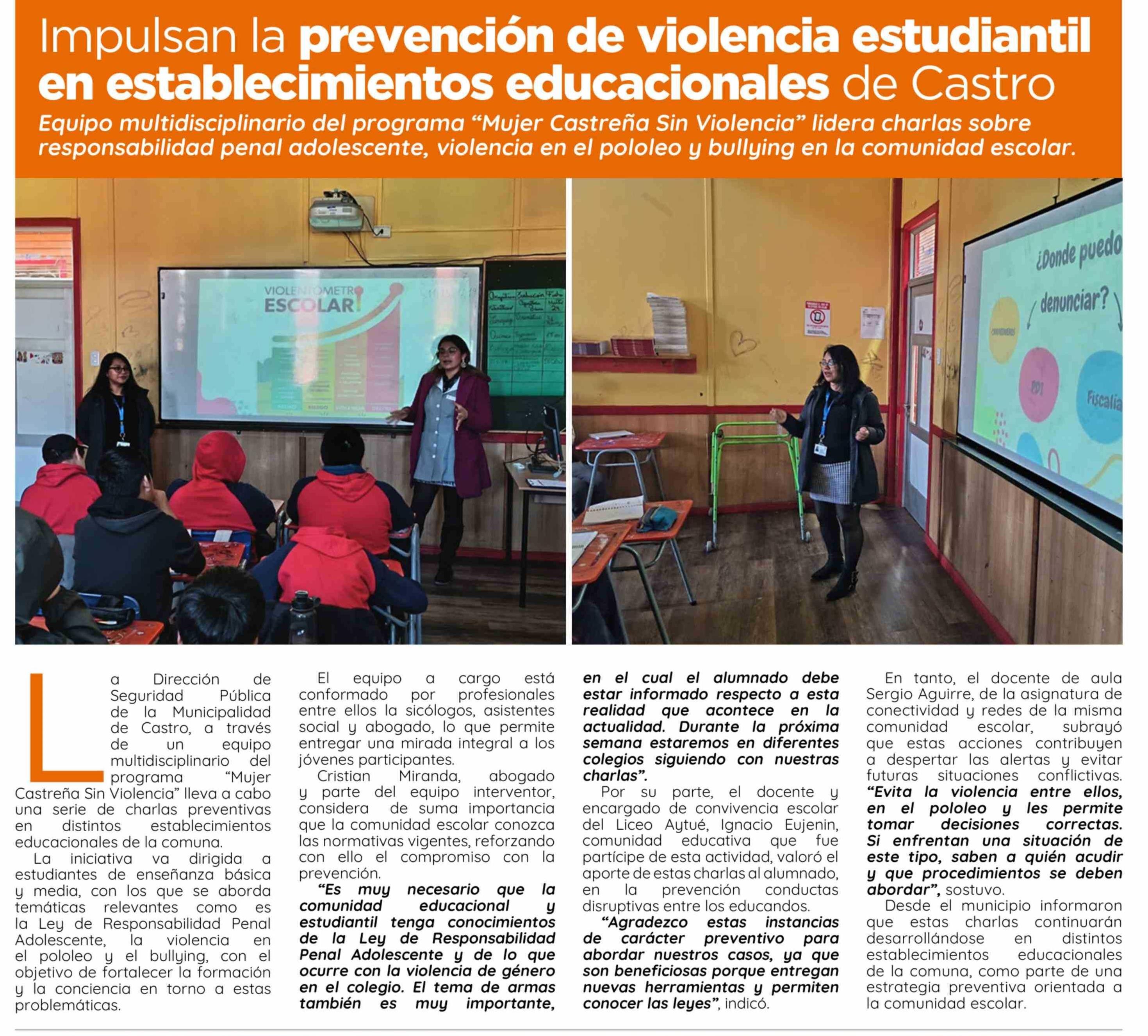 Impulsan la prevención de violencia estudiantil en establecimientos educacionales de Castro