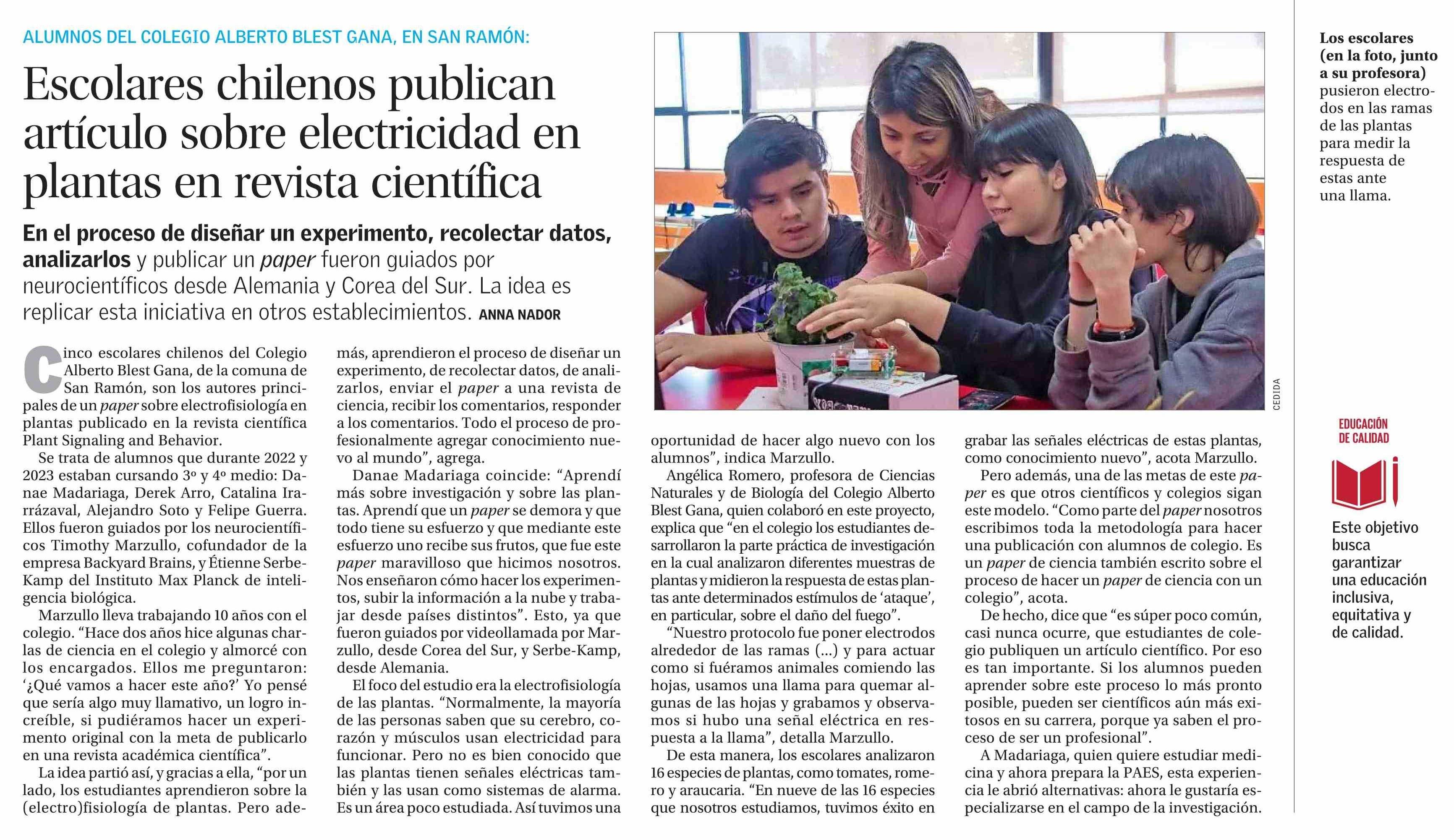 Escolares chilenos publican artículo sobre electricidad en plantas en revista científica