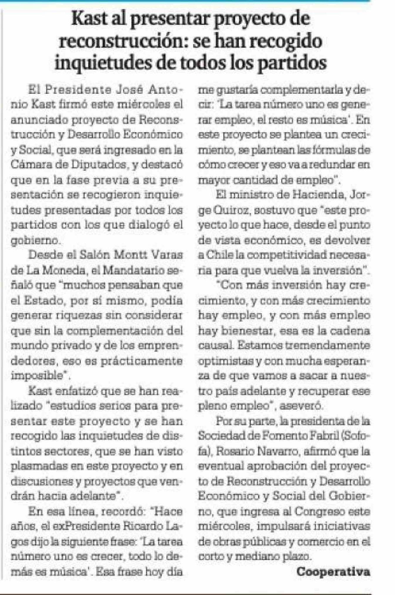 Kast al presentar proyecto de reconstrucción: se han recogido inquietudes de todos los partidos