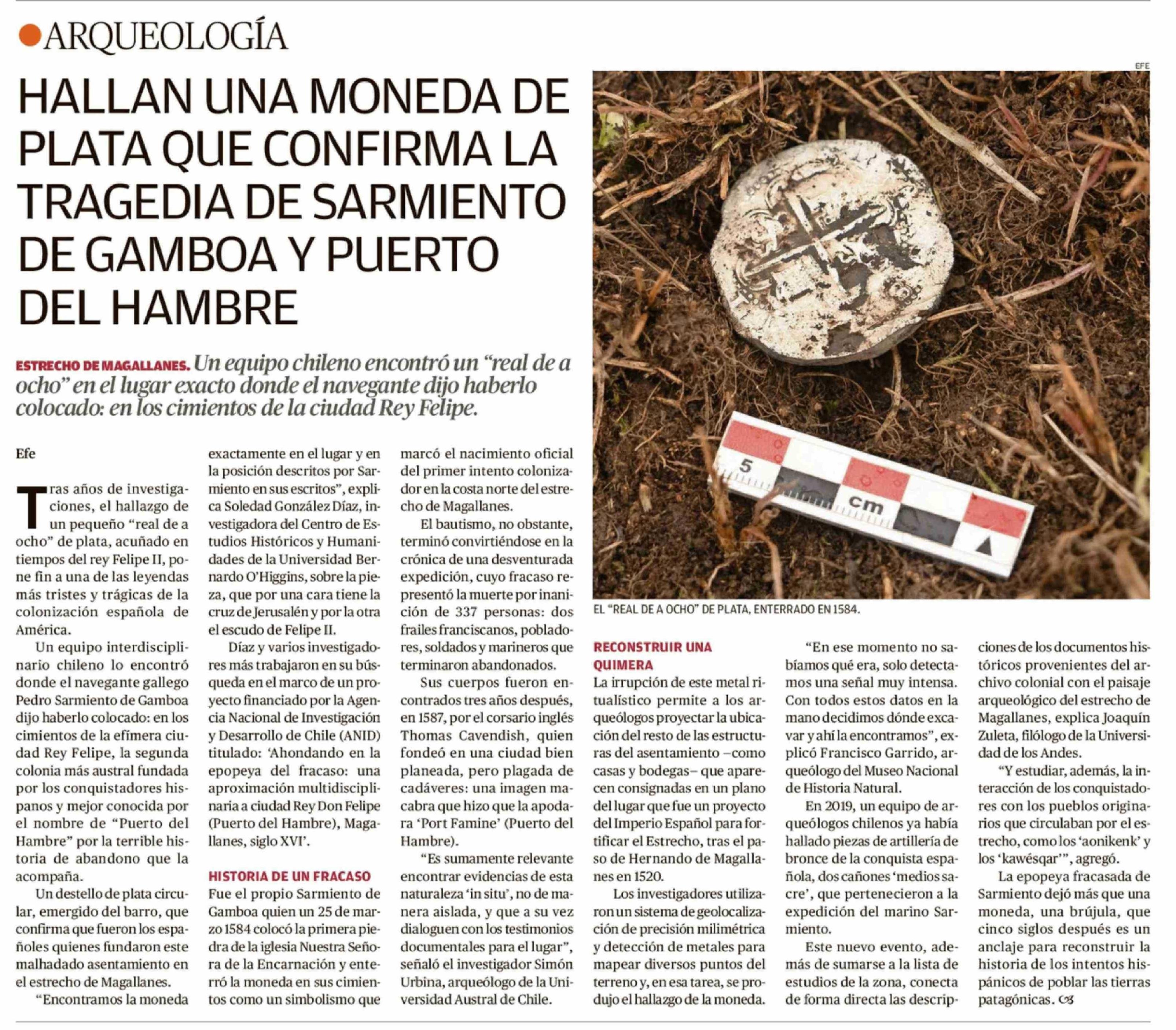 HALLAN UNA MONEDA DE PLATA QUE CONFIRMA LA TRAGEDIA DE SARMIENTO DE GAMBOA Y PUERTO DEL HAMBRE