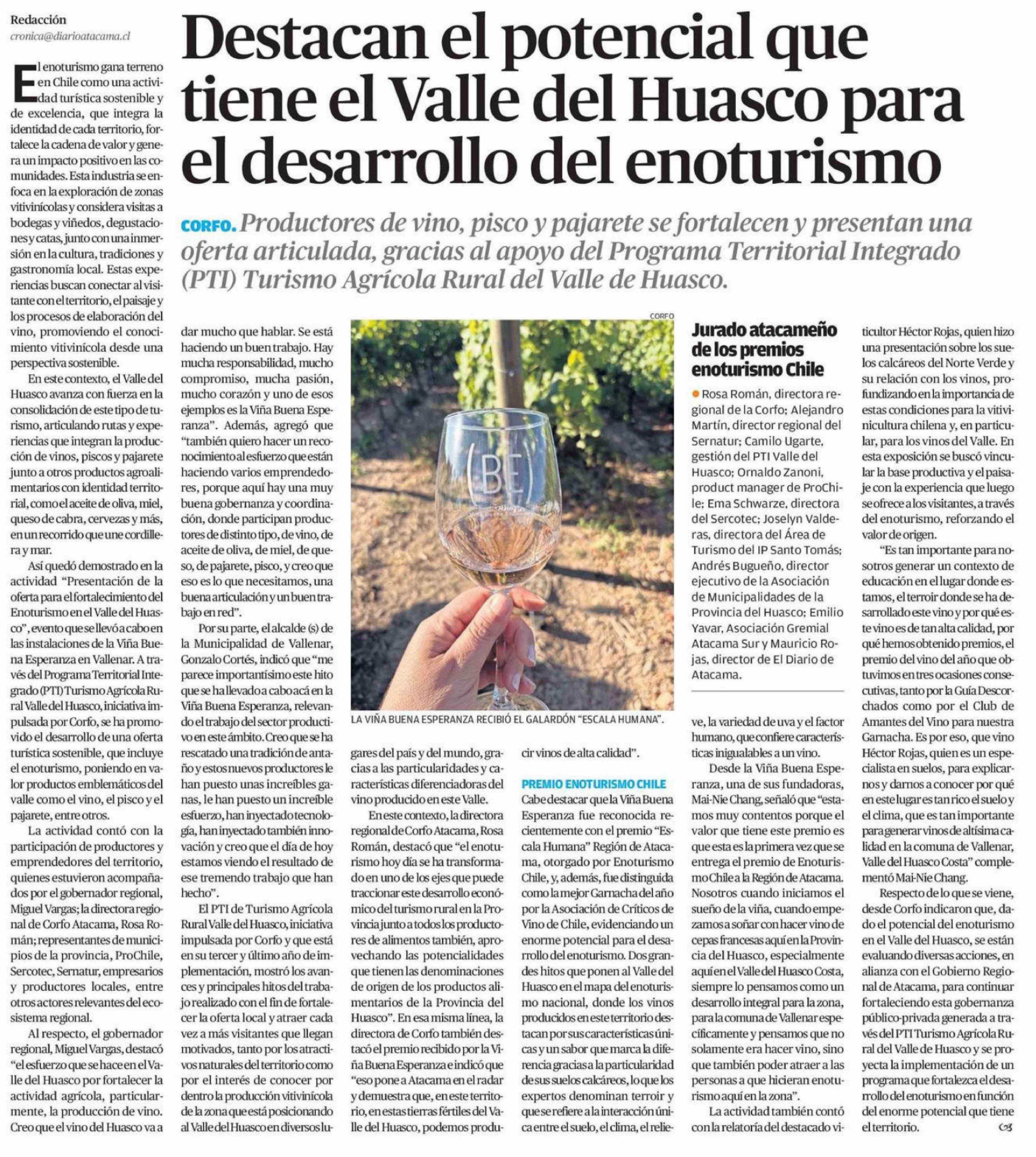 Destacan el potencial que tiene el Valle del Huasco para el desarrollo del enoturismo