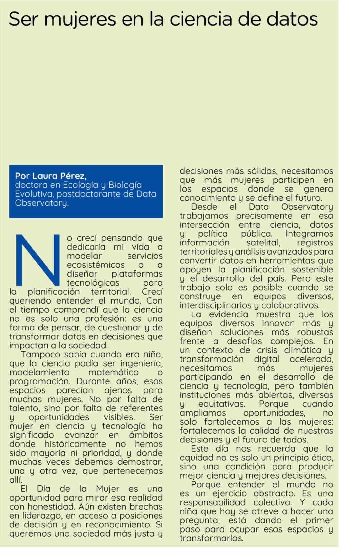 Columnas de Opinión: Ser mujeres en la ciencia de datos