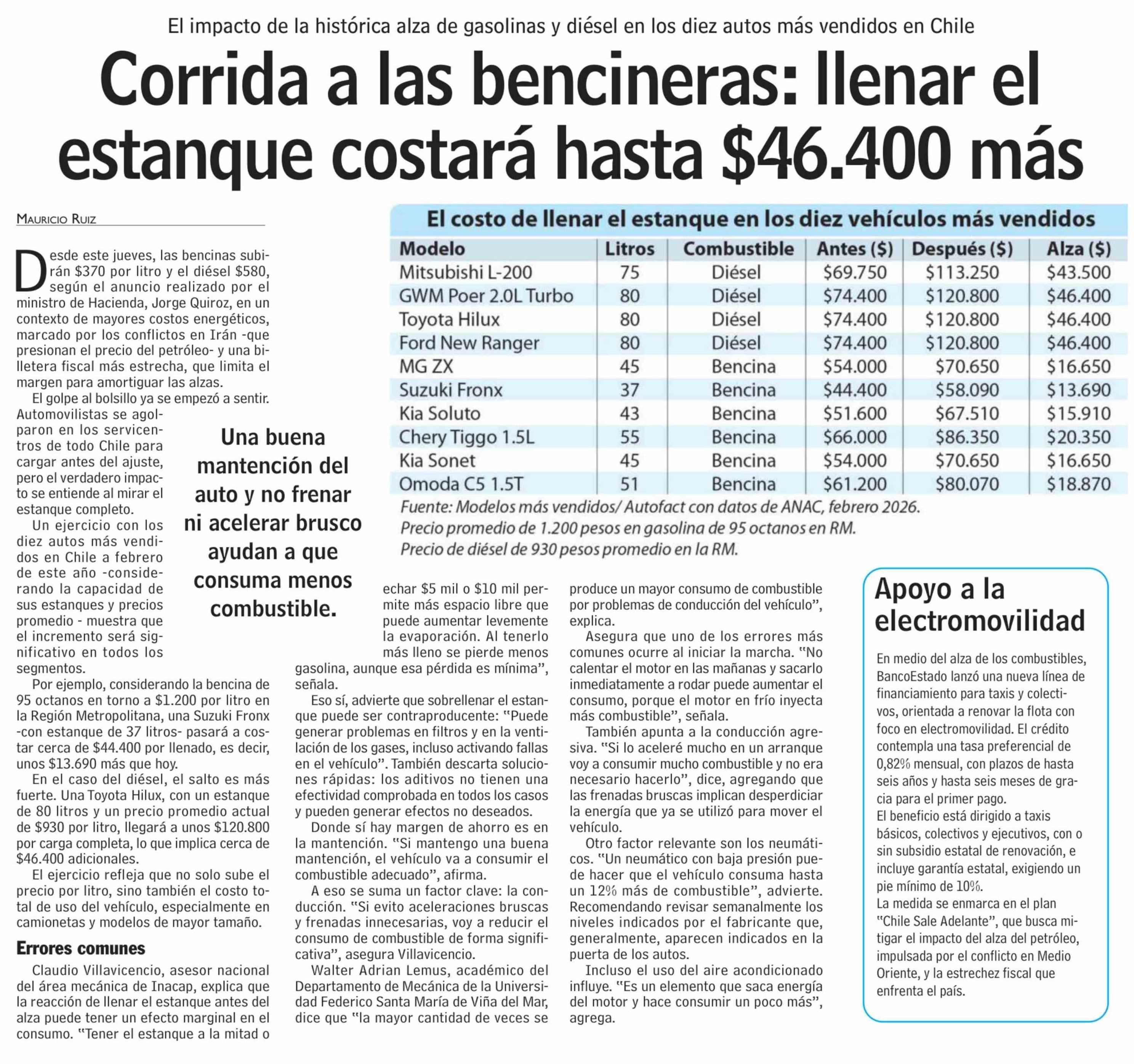 Corrida a las bencineras: llenar el estanque costará hasta $46.400 más