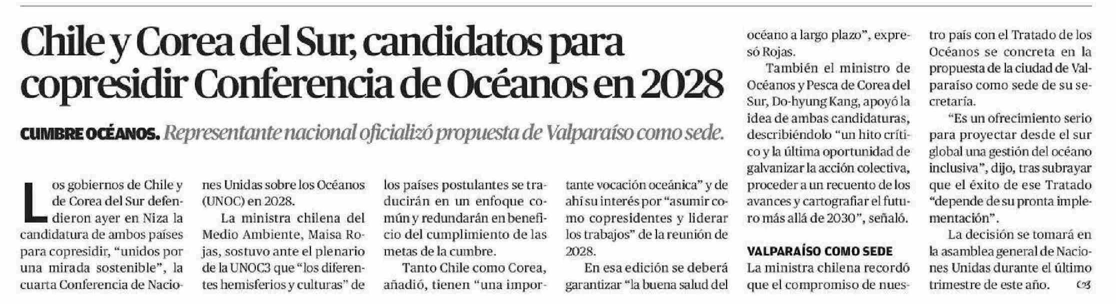 Chile y Corea del Sur, candidatos para copresidir Conferencia de Océanos en 2028