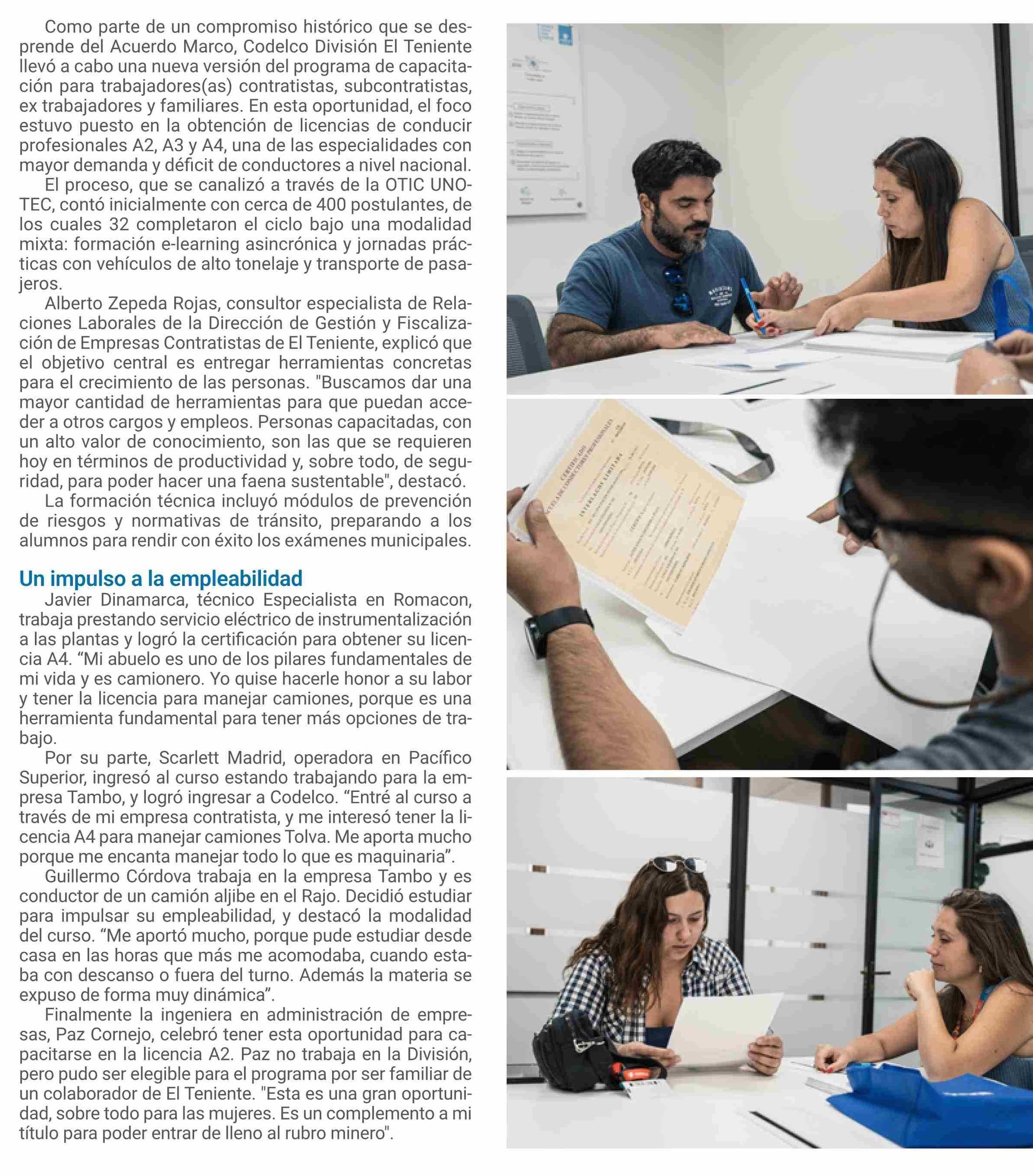 | Título: | Como parte de un compromiso histórico que se desprende del Acuerdo Marco, Codelco División El Teniente llevó a cabo una nueva versión del programa de capacitación para trabajadores(as) contratistas, subcontratistas, ex trabajadores y familiares. En esta oportunidad, el foco estuvo puesto en la obten |