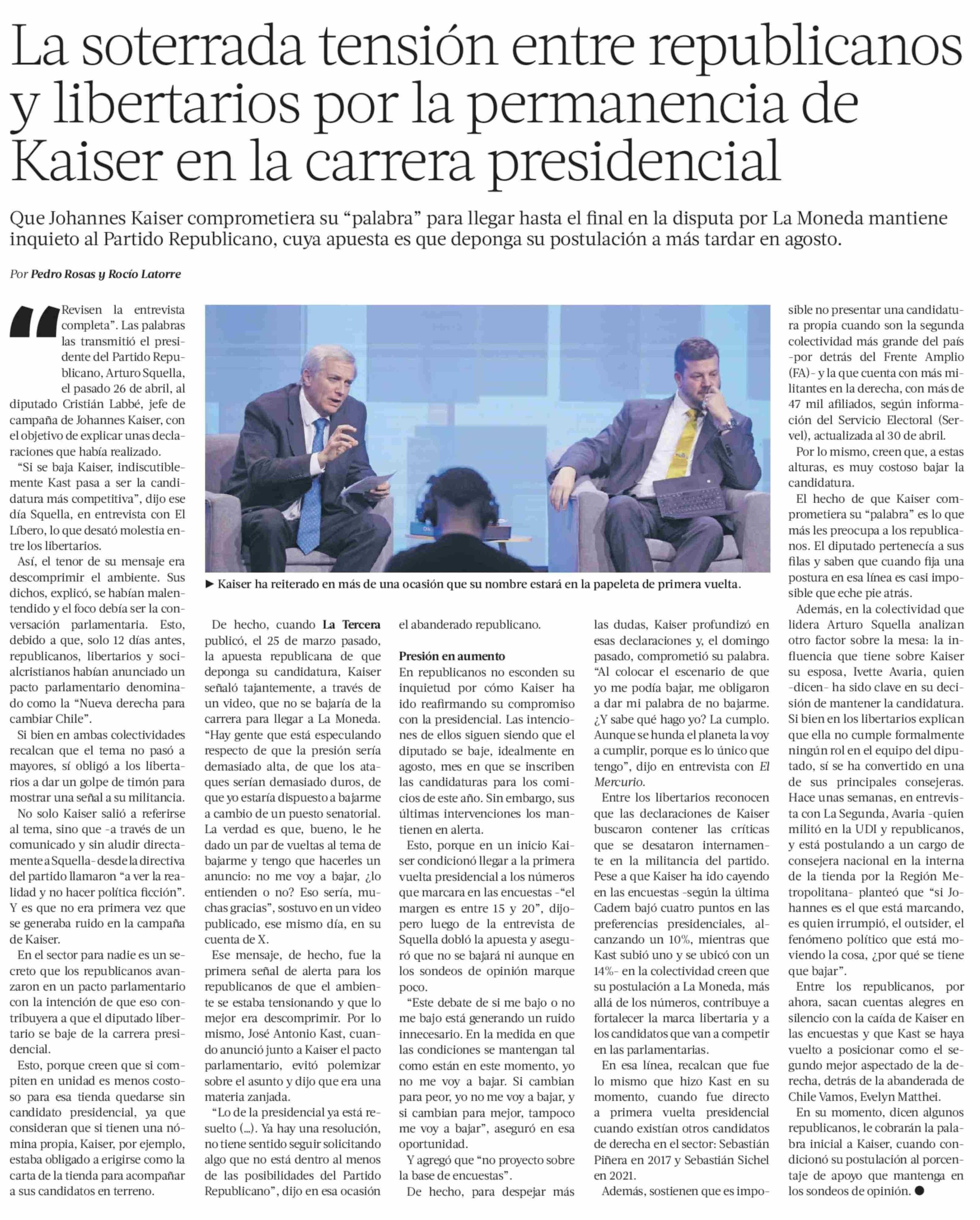 La soterrada tensión entre republicanos y libertarios por la permanencia de Kaiser en la carrera presidencial