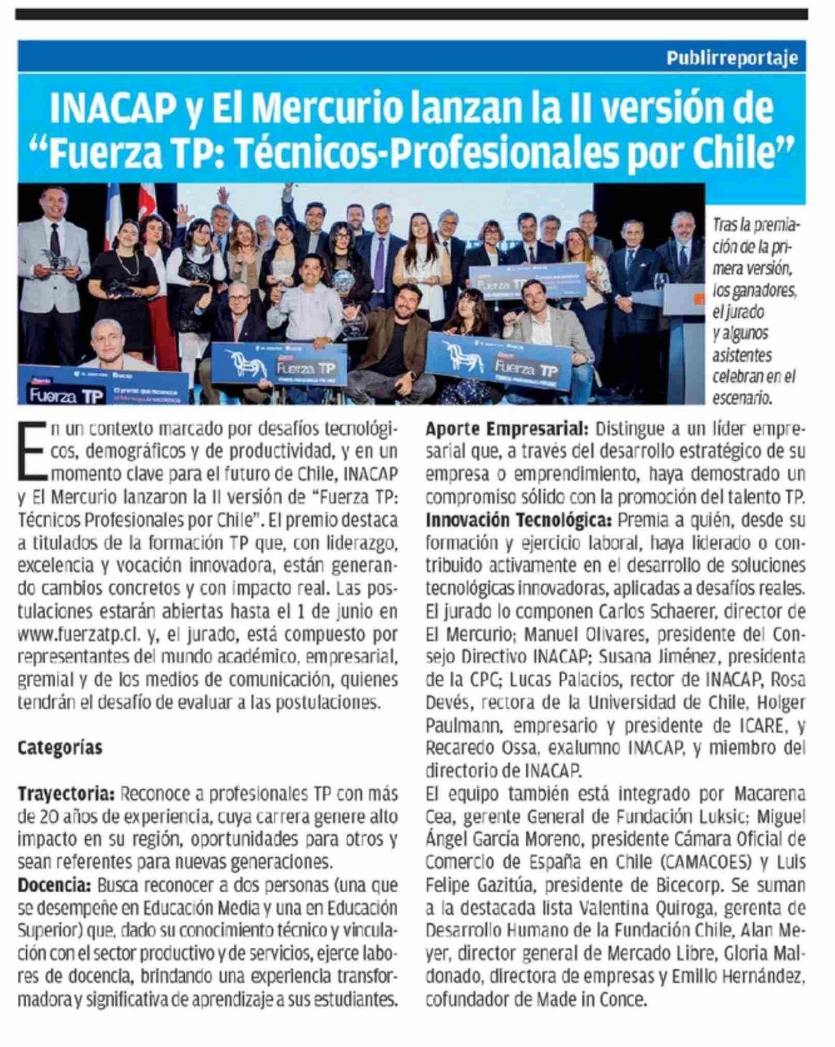 INACAP y El Mercurio lanzan la II versión de “Fuerza TP: Técnicos-Profesionales por Chile”