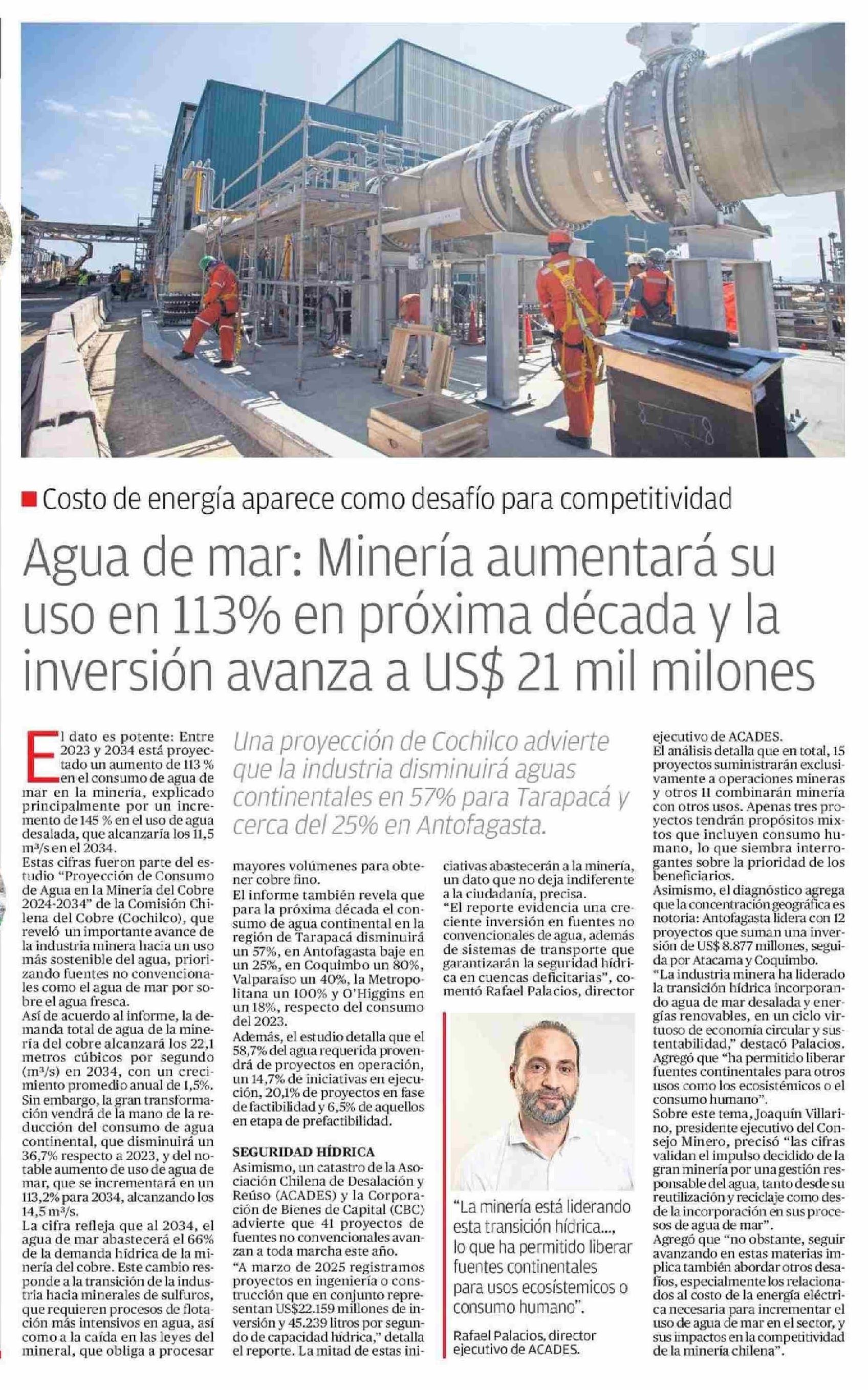 | Título: | Agua de mar: Minería aumentará su uso en 113% en próxima década y la inversión avanza a US$ 21 mil milones |
