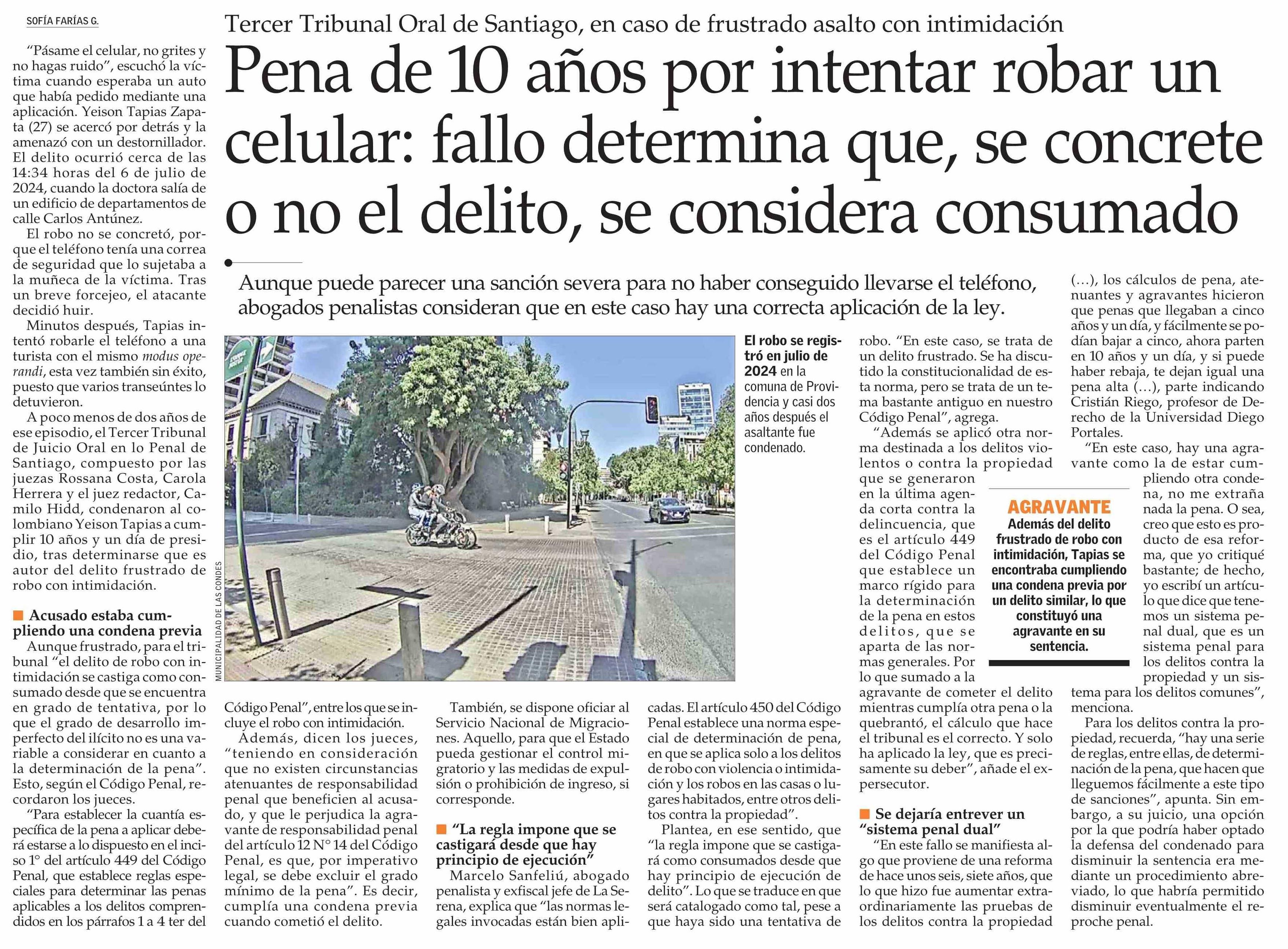 Pena de 10 años por intentar robar un celular: fallo determina que, se concrete o no el delito, se considera consumado