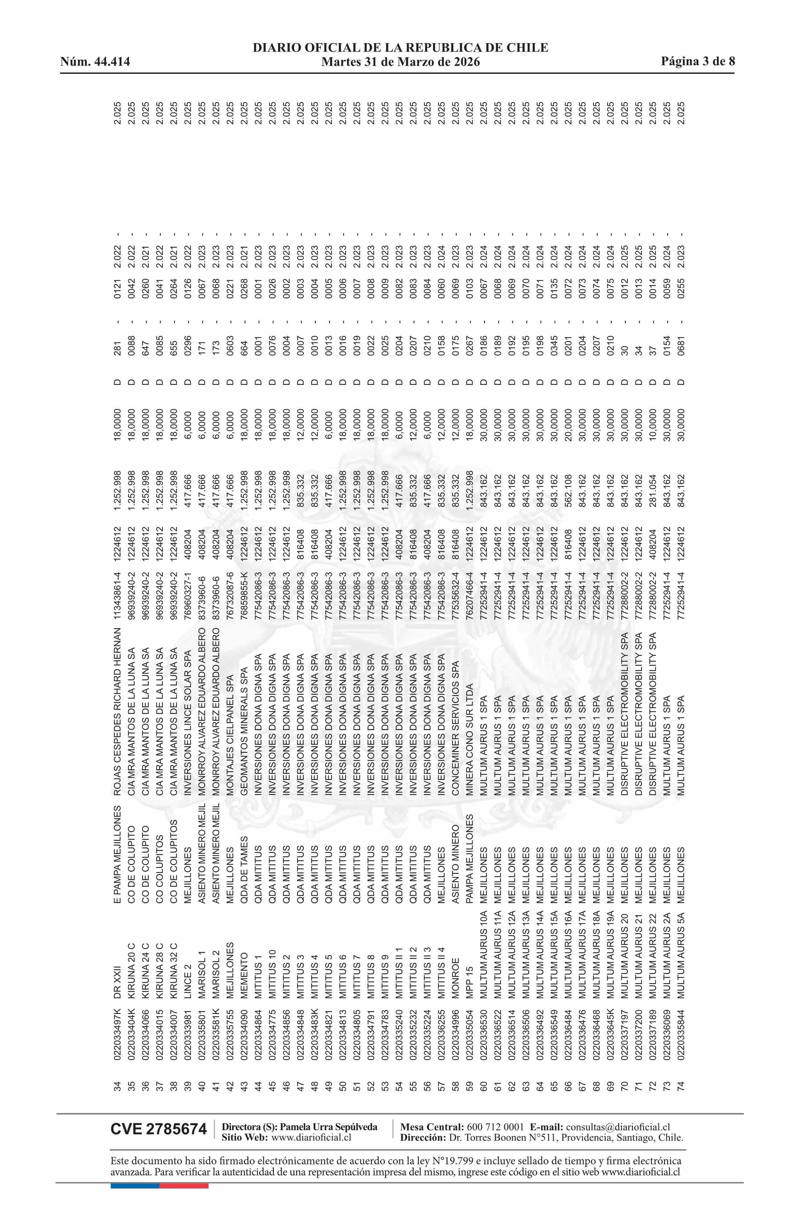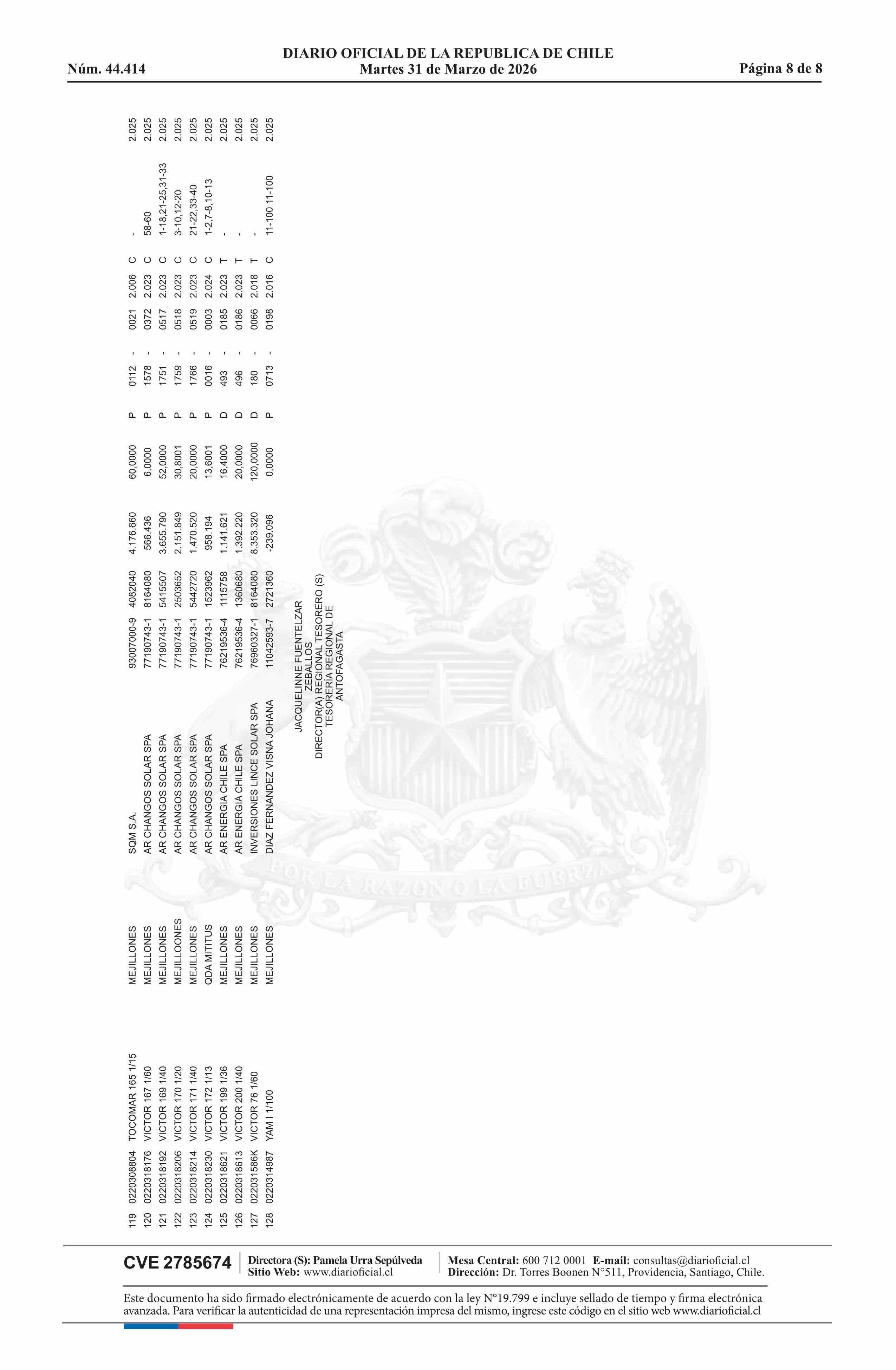 DIARIO OFICIAL CHILE - BOLETÍN OFICIAL DE MINERÍA (DIARIO OFICIAL CHILE – BOM – NÓMINA REMATE)