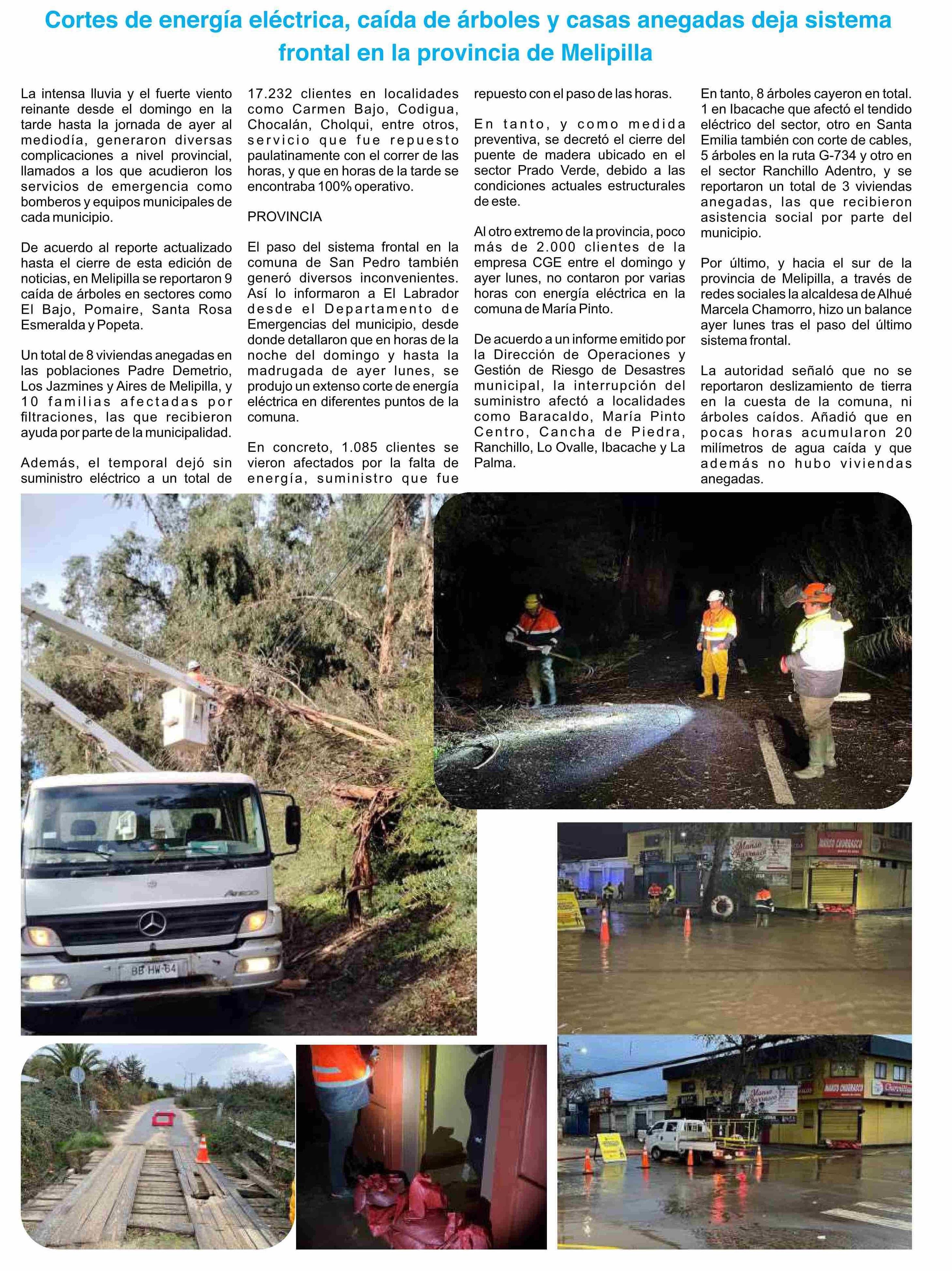 Cortes de energía eléctrica, caída de árboles y casas anegadas deja sistema frontal en la provincia de Melipilla