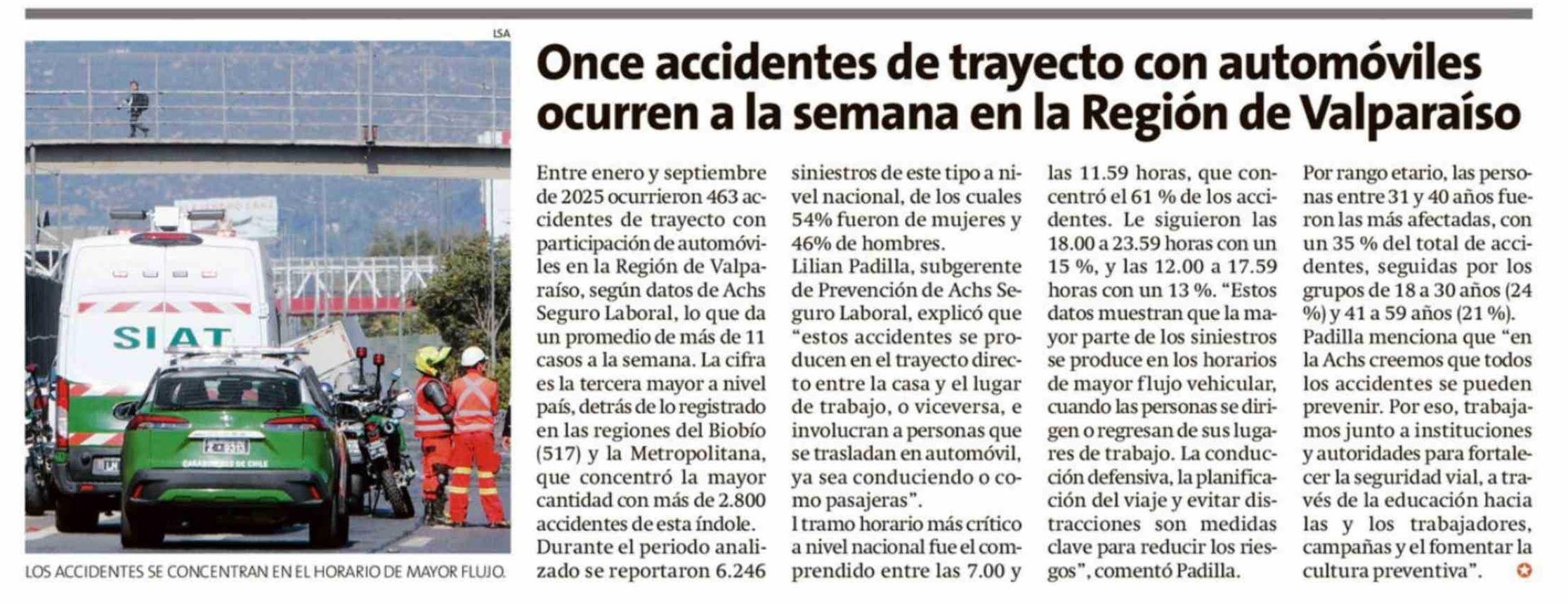 Once accidentes de trayecto con automóviles ocurren a la semana en la Región de Valparaíso