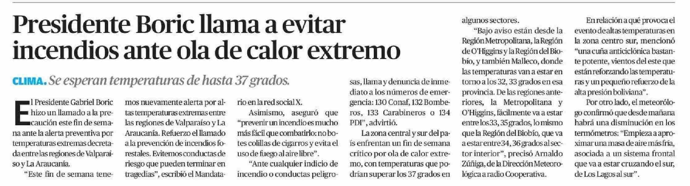 Presidente Boric llama a evitar incendios ante ola de calor extremo