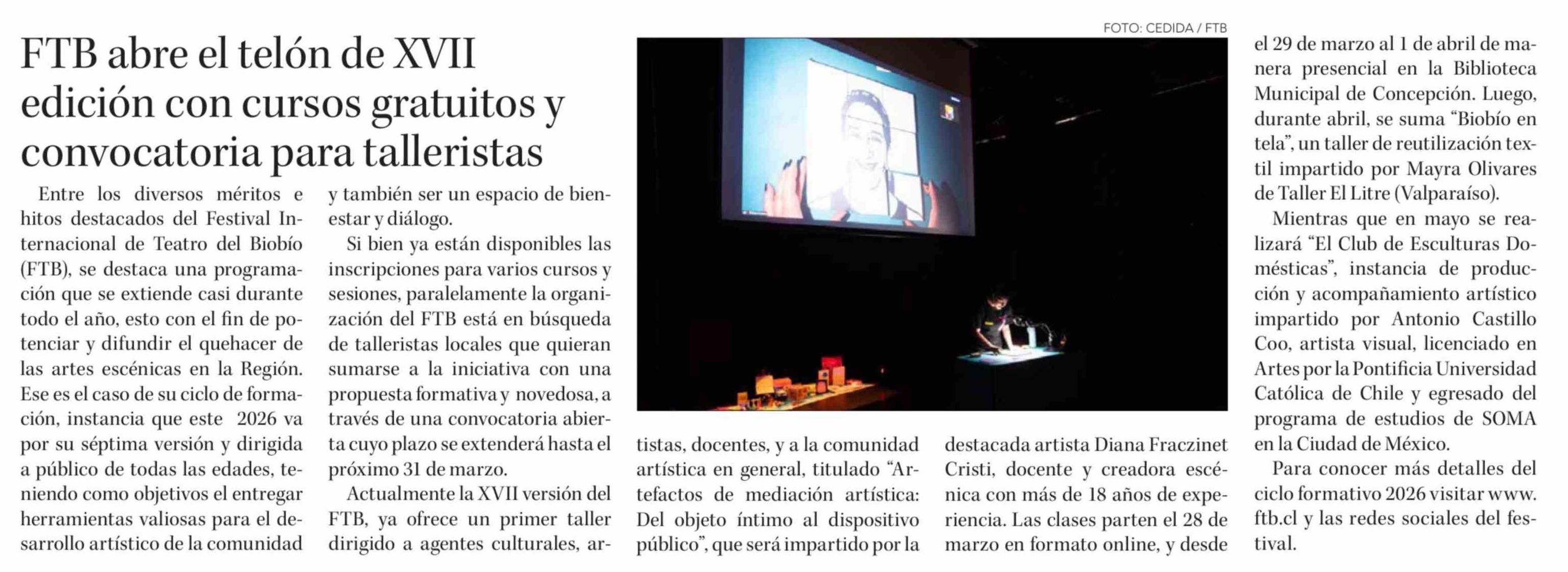 FTB abre el telón de XVII edición con cursos gratuitos y convocatoria para talleristas