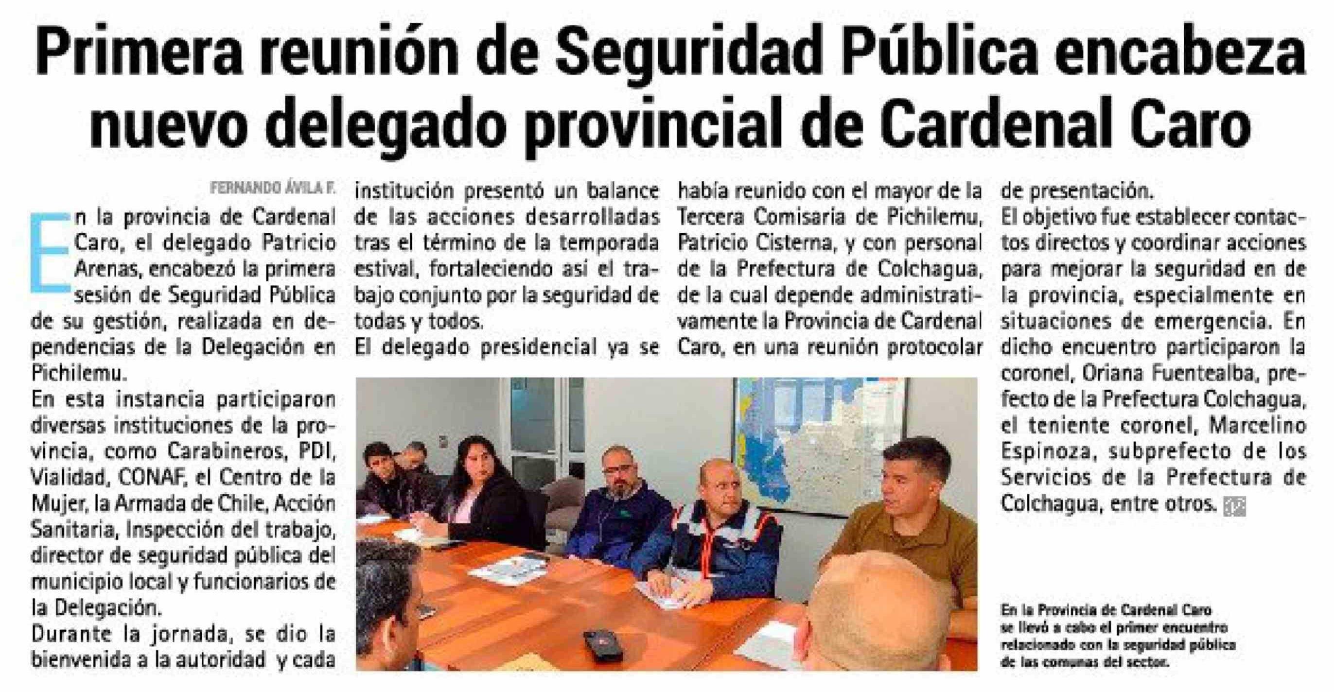 Primera reunión de Seguridad Pública encabeza nuevo delegado provincial de Cardenal Caro