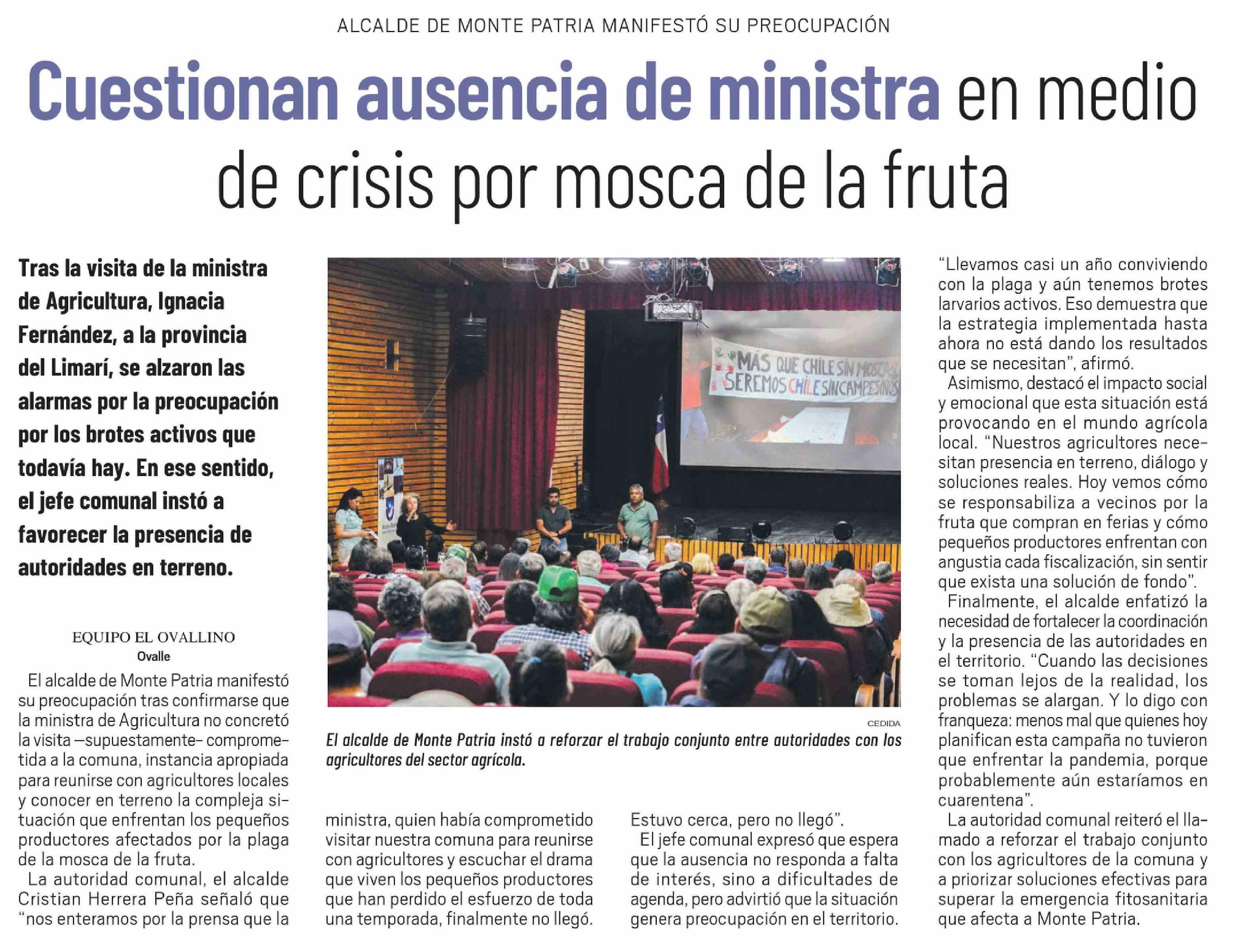 Cuestionan ausencia de ministra en medio de crisis por mosca de la fruta