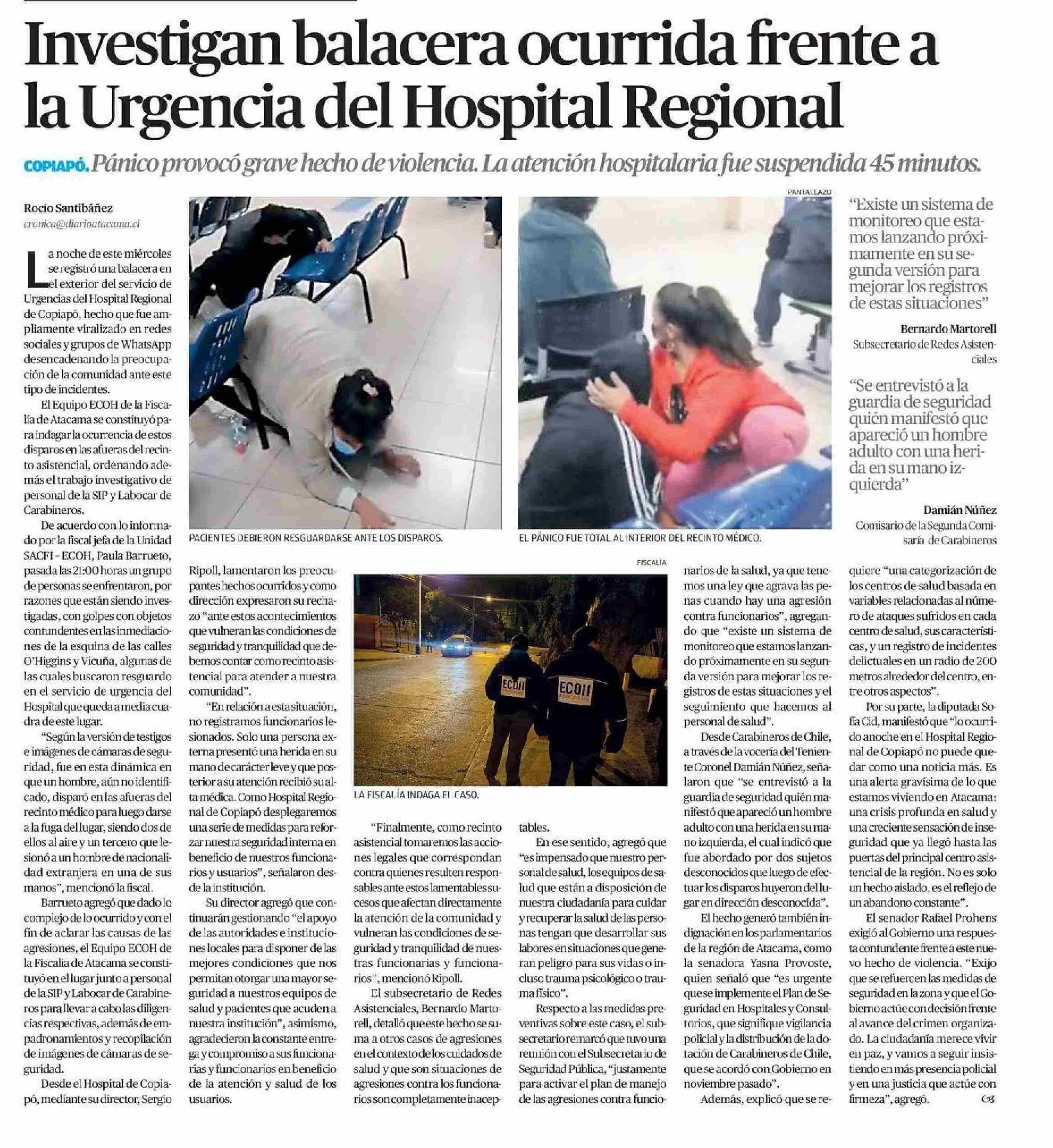 Investigan balacera ocurrida frente a la Urgencia del Hospital Regional