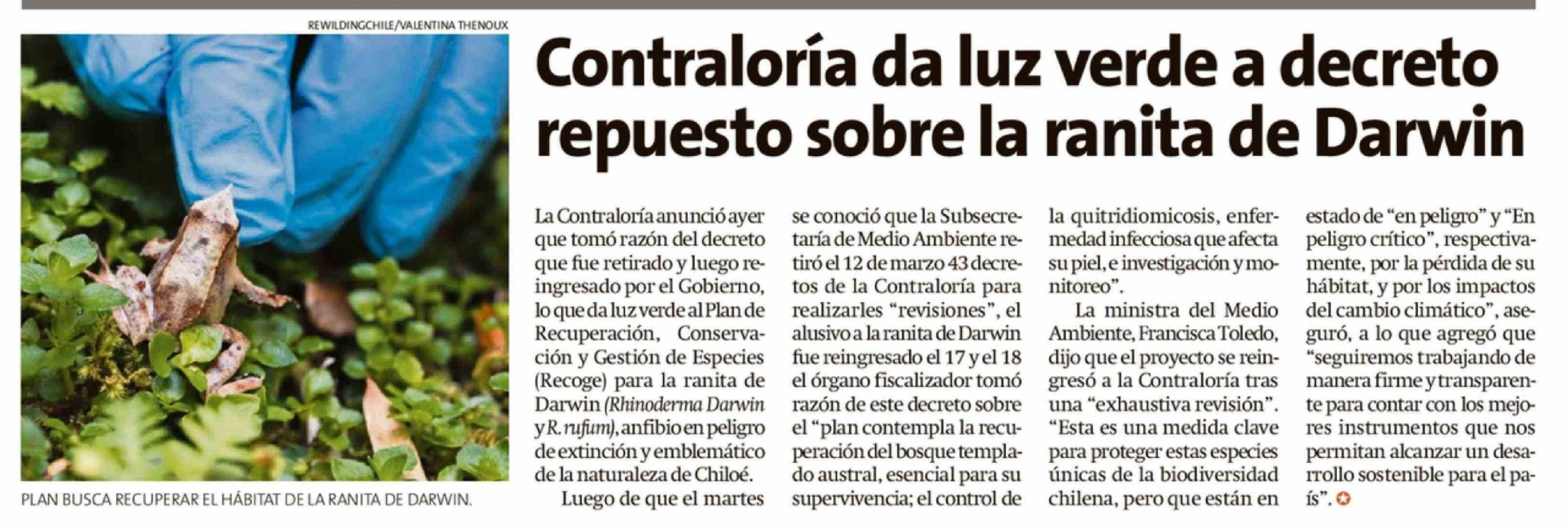 Contraloría da luz verde a decreto repuesto sobre la ranita de Darwin